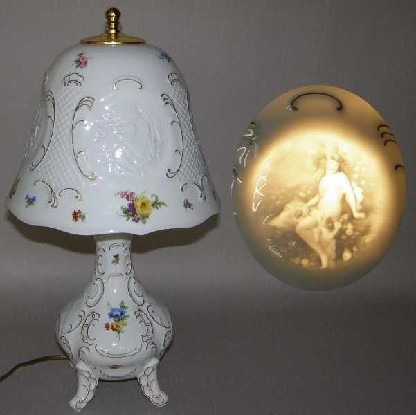 Лампа с цветами. Литофания. Европа, начало XX века. Фарфор, роспись, золочение.