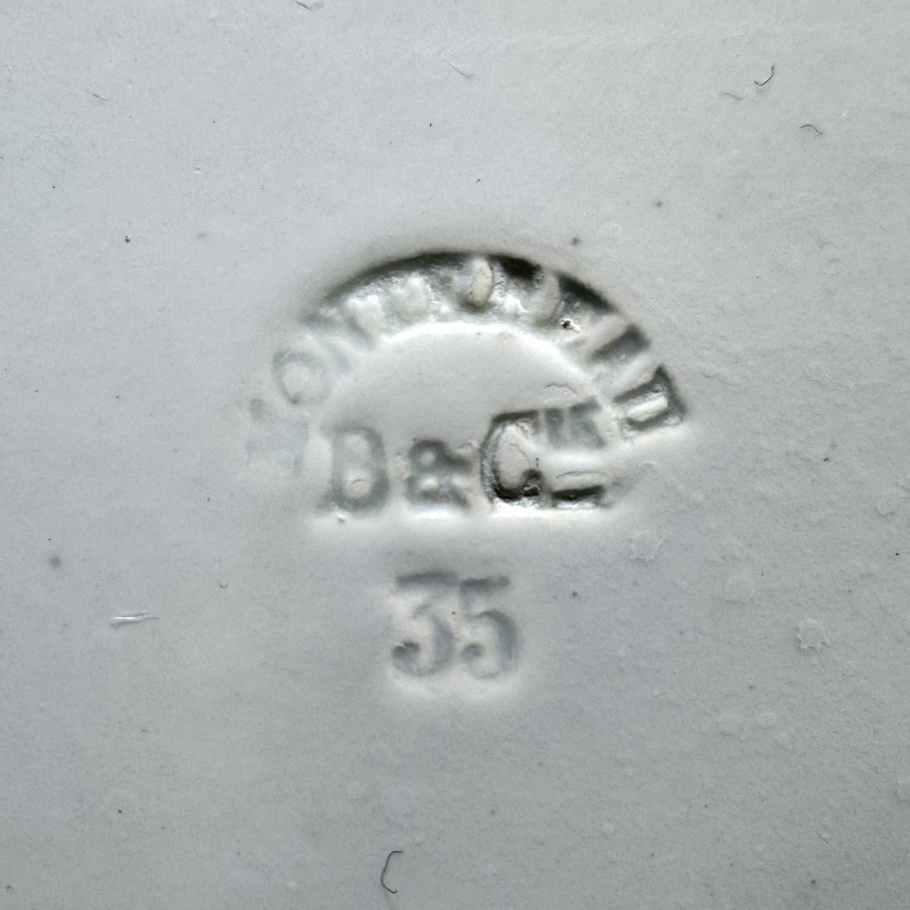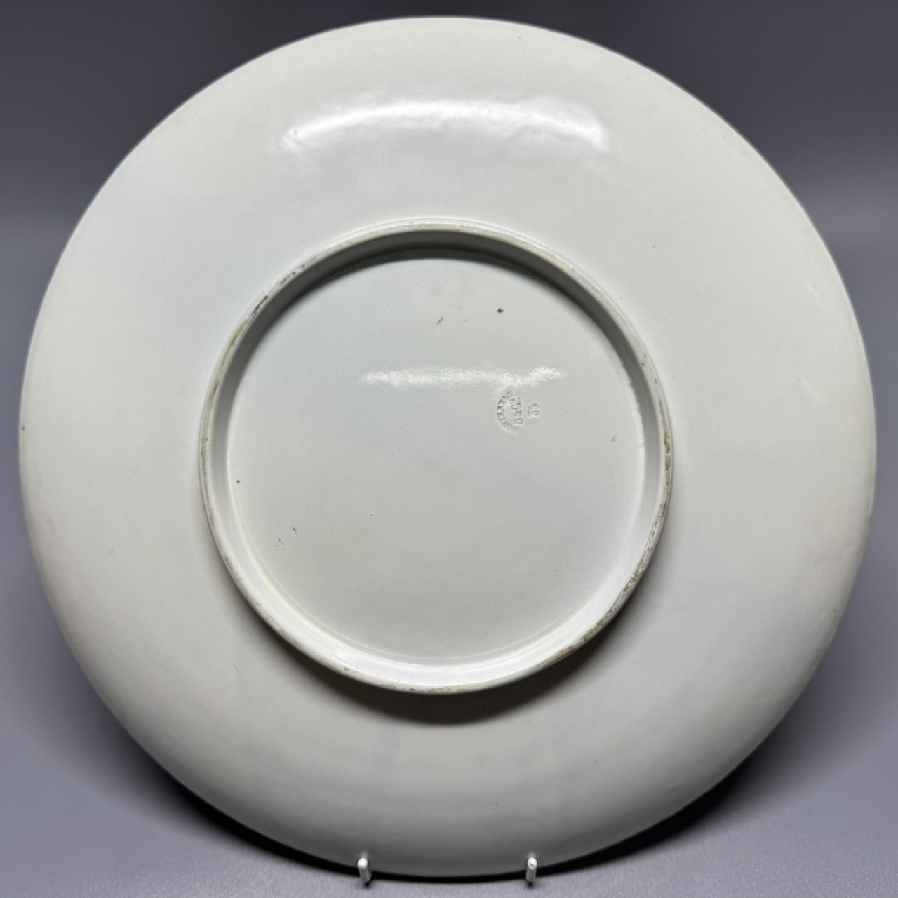 На дне блюда расположена марка: «MONTEREAU // B & Cil // 35». Соотносится с одним из видов марок французской фабрики «Creil et Montereau». Большинство изделий русской керамической мастерской в Париже исполнялось на фаянсе данной фабрики, расцвет которой пришелся на вторую половину ХІХ века.