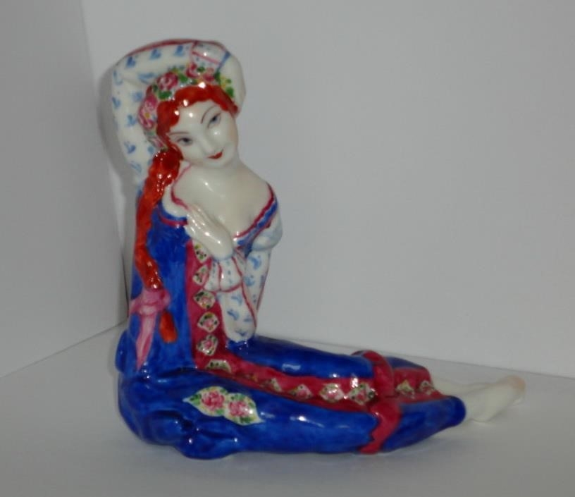 Фигура «Псиша». СССР, Ленинград, 1926 год. Государственный фарфоровый завод им. М.В. Ломоносова (ГФЗ). Автор модели: О.А. Глебова-Судейкина (1923 год). Фарфор, роспись надглазурная; марка — синяя по неглазурованной поверхности, от руки: серп, молот, часть шестерни и дата: 1926.
