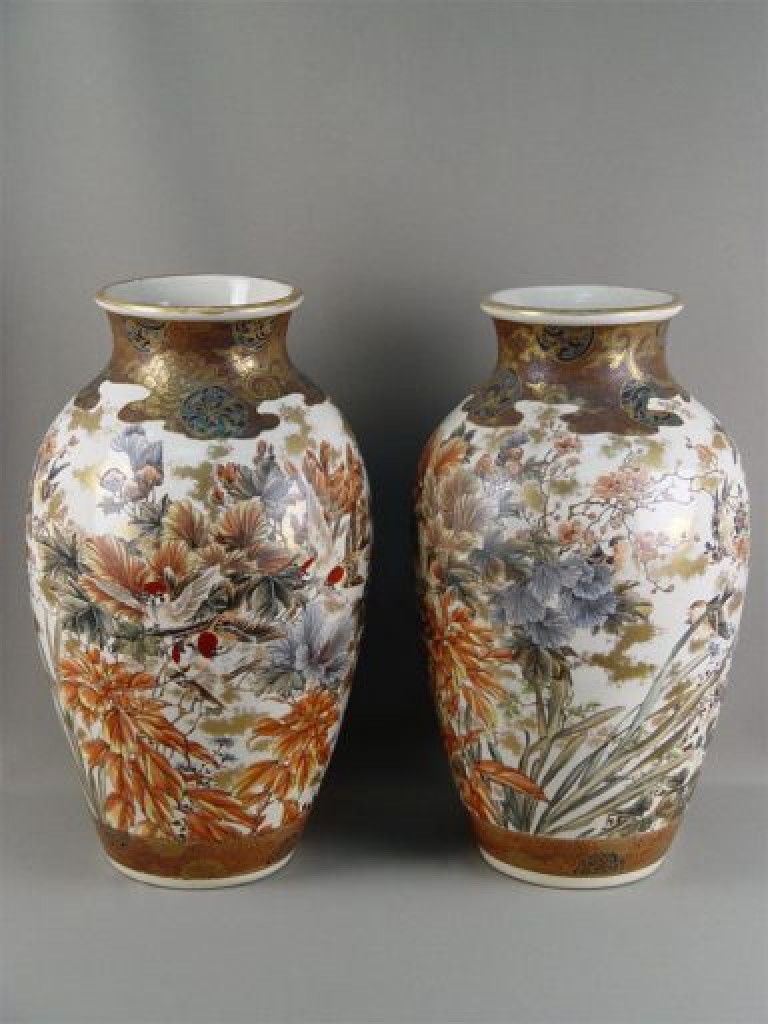 Пара декоративных ваз «Цветы и птицы». Япония, начало XX века. Фарфор, роспись, золочение.