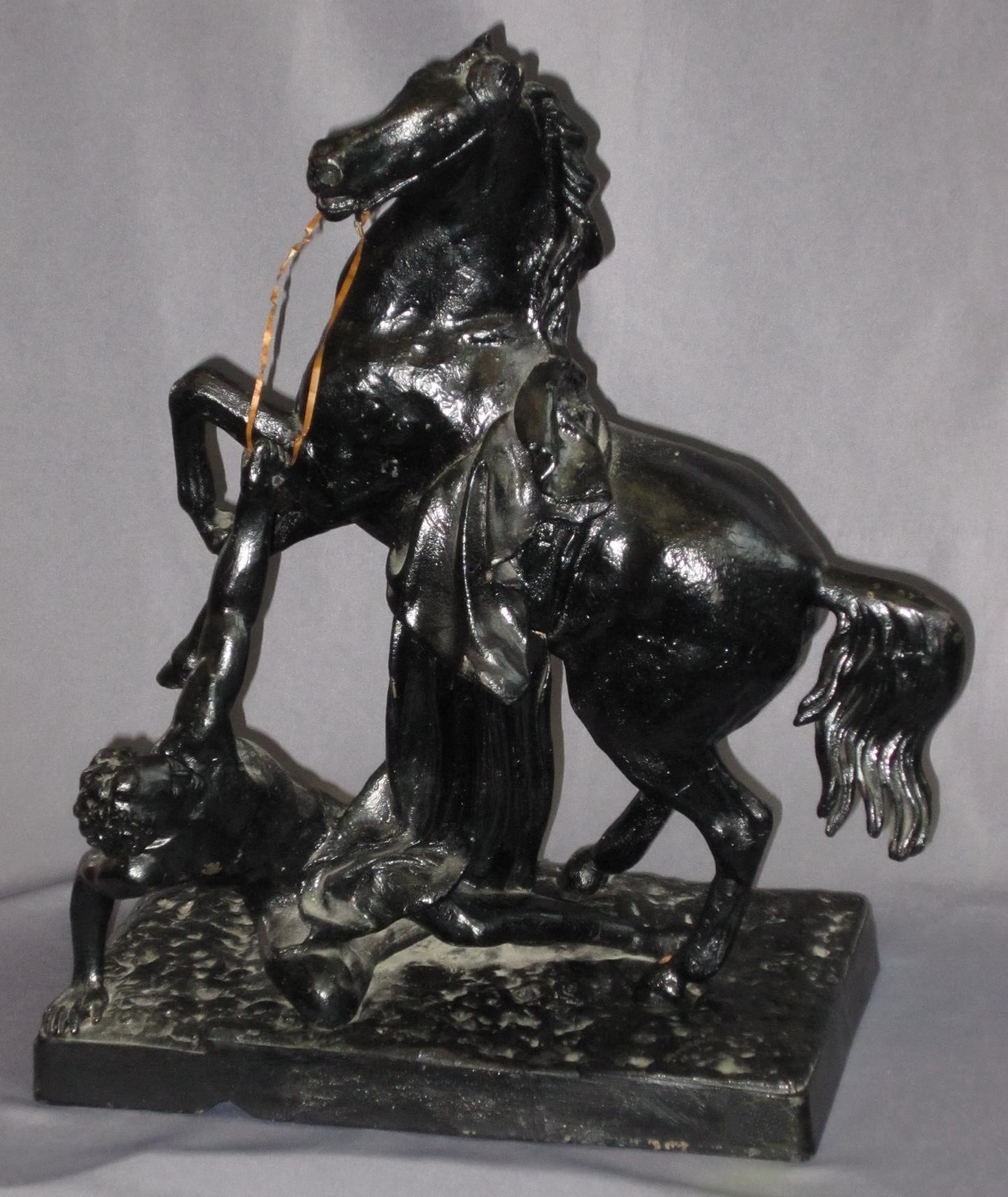 Скульптурная композиция «Лошадь с упавшим всадником». СССР, XX век. Скульптор: П.К. Клодт. Выполнена по модели этюда к третьей скульптурной группе «Конь с водничем» (1846-1850 гг.). Установлена на восточной стороне Аничкова моста в Петербурге (1850 г.). Клеймо: УЭТМ (Уралэлектротяжмаш). Чугунное литьё.