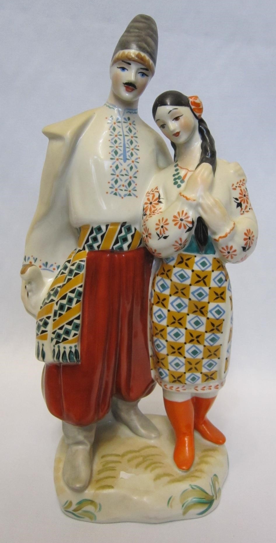 Скульптурная композиция «Левко и Оксана». Украина, 1960-70 годы. Киевский экспериментальный керамико-художественный завод (КЭКХЗ). Скульптор: О.Л. Жникруп. Фарфор, роспись.