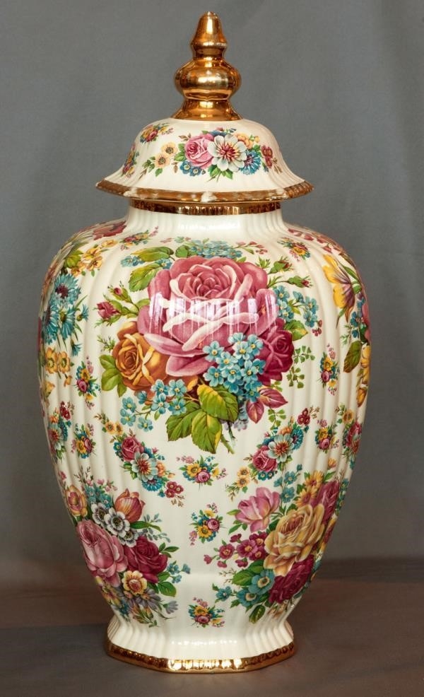 Ваза с крышкой «Цветы». Бельгия, середина XX века. Фабрика Boch Freres Keramis. Фаянс, деколь, золочение.