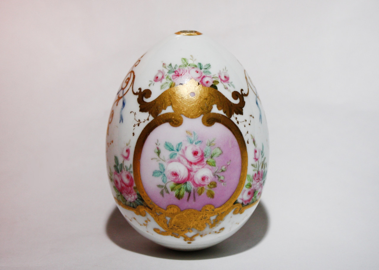 Яйцо пасхальное с цветами. Российская Империя, XIX век. Частный фарфоровый завод. Фарфор, роспись, золочение.