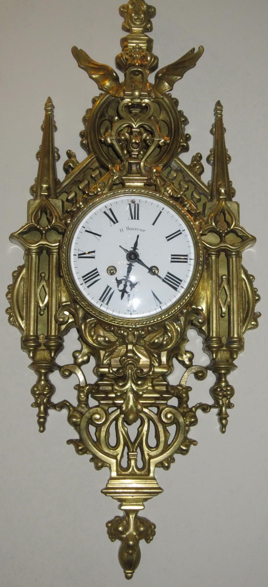 Часы настенные в готическом стиле. Германия, XIX век. H. BOSSERT. Бронза, золочение. Размер: 71х28 см.
