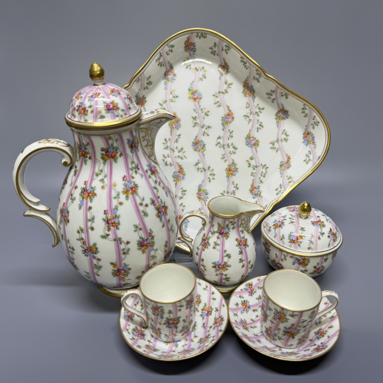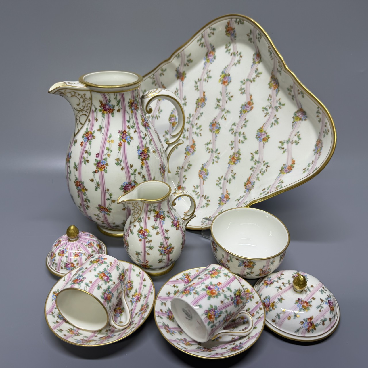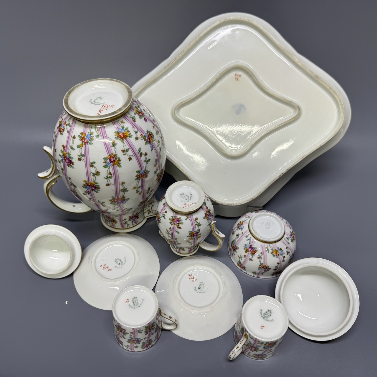 Чайный сервиз «Тет-а-тет». Германия, Nymphenburg (Нимфенбург), конец XIX века. Фарфор, роспись, золочение.