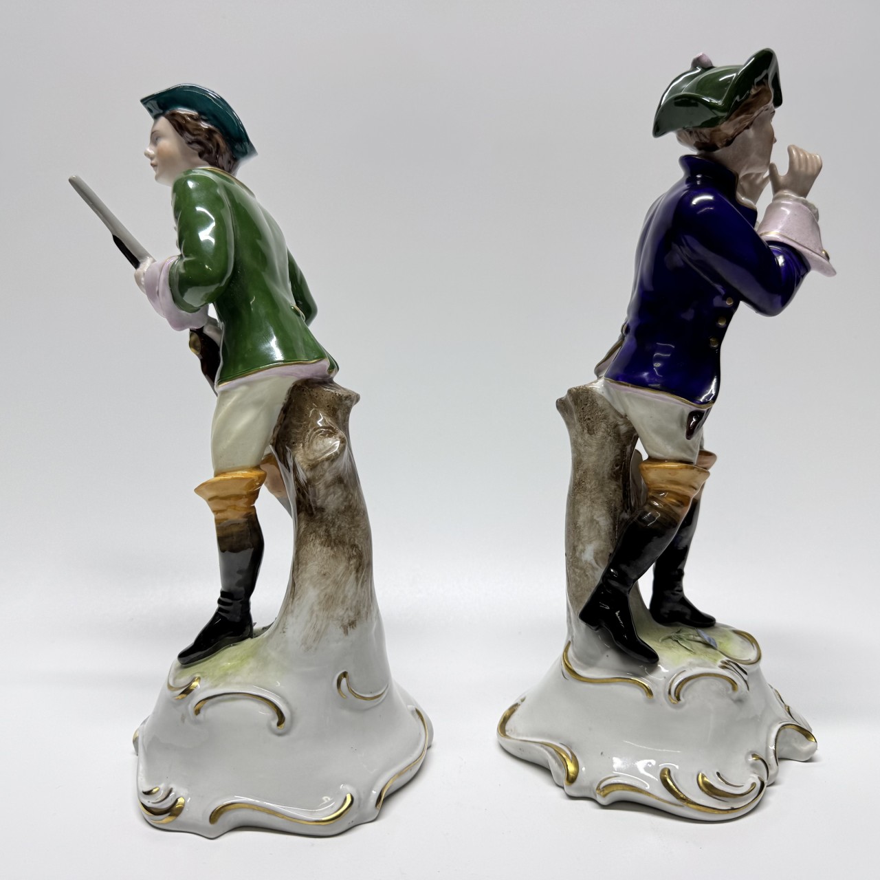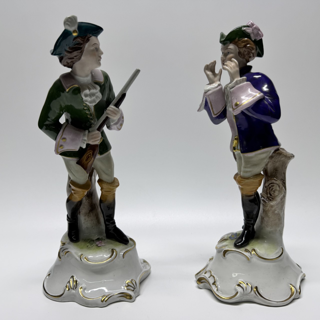 Парные скульптуры «Охотники». Германия, Тюрингия, фабрика Шайбе-Альсбах (Шайбэ-Альсбах, Scheibe-Alsbach). Фарфор, роспись.