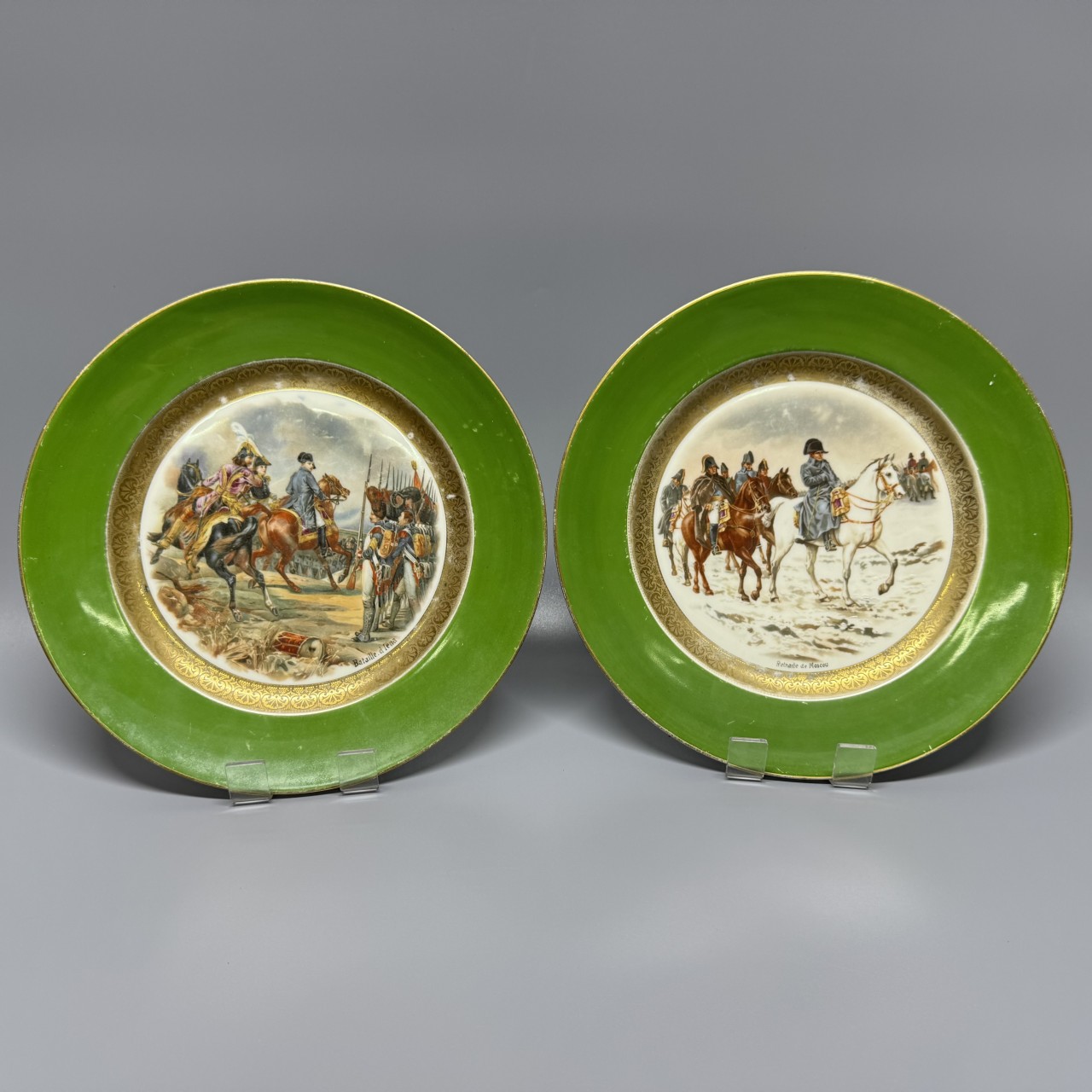 Тарелки парные «Сцены из жизни Наполеона». Франция, Лимож (Limoges), ХХ в. Фарфор, деколь, золочение.