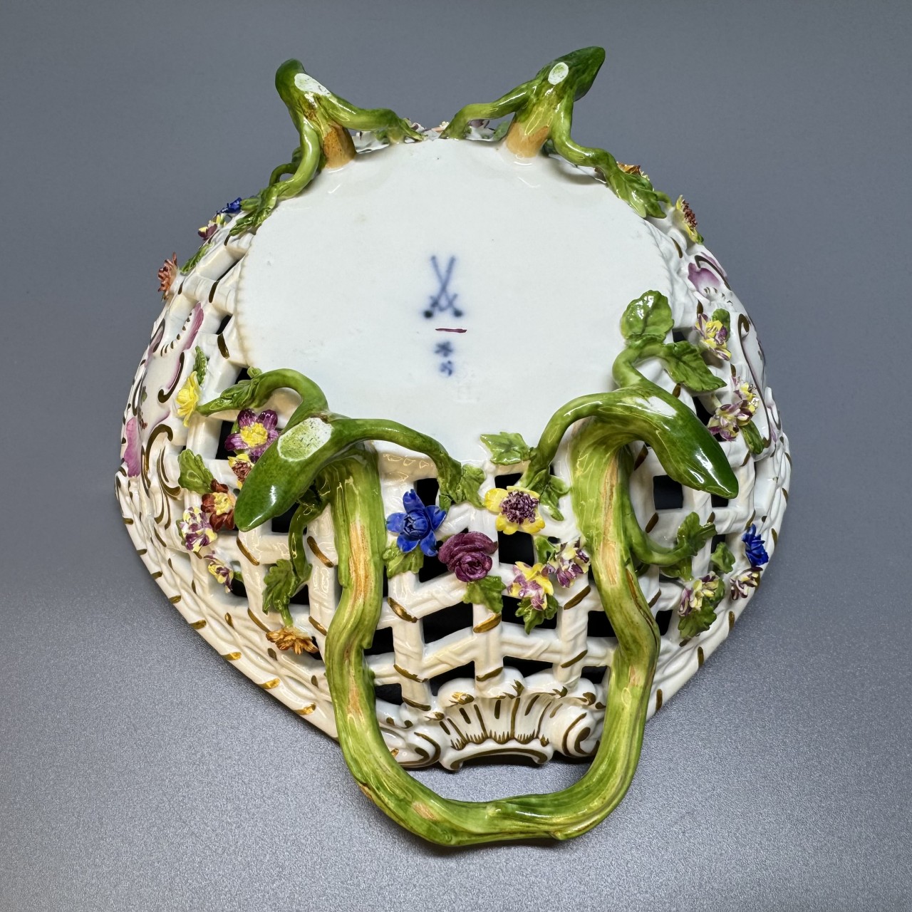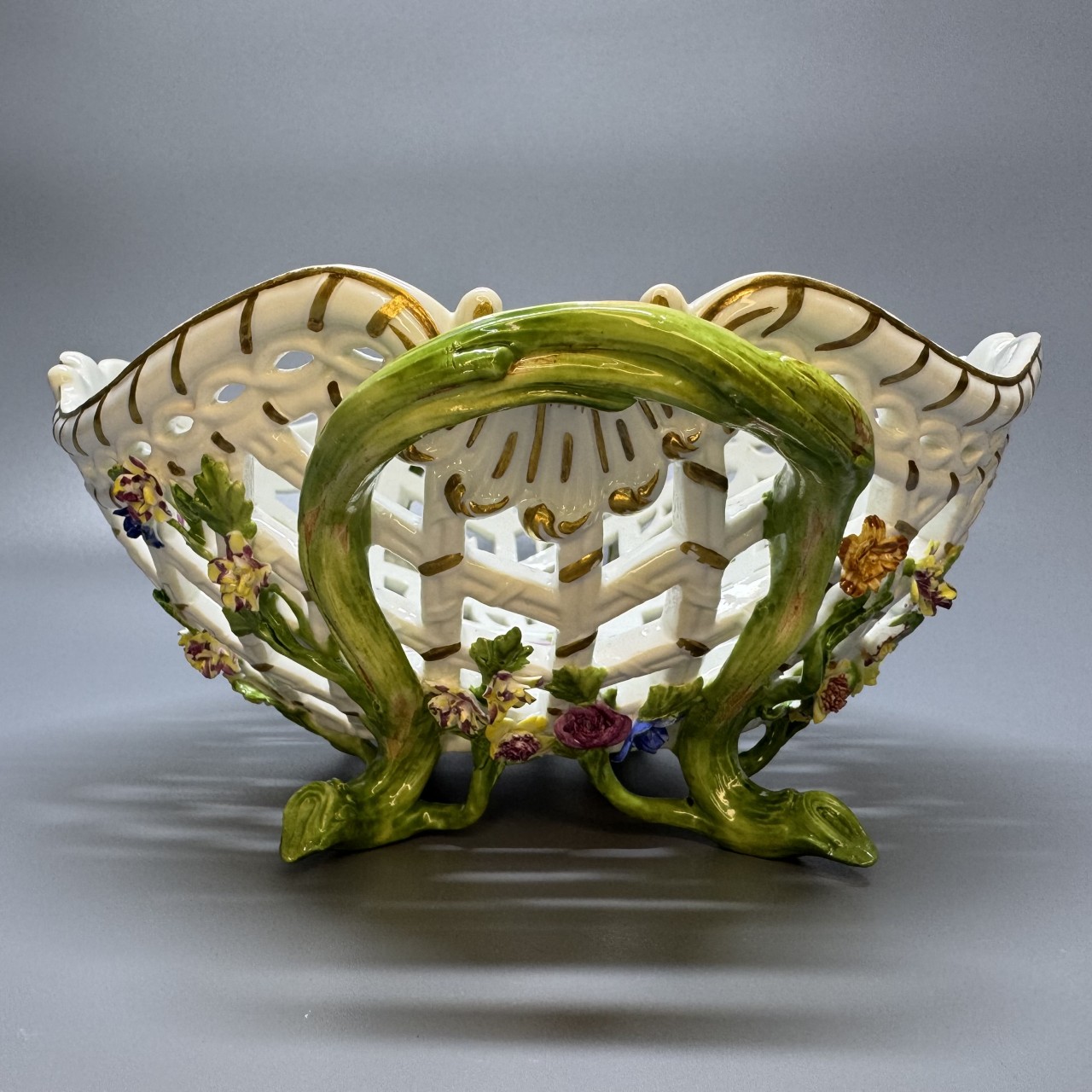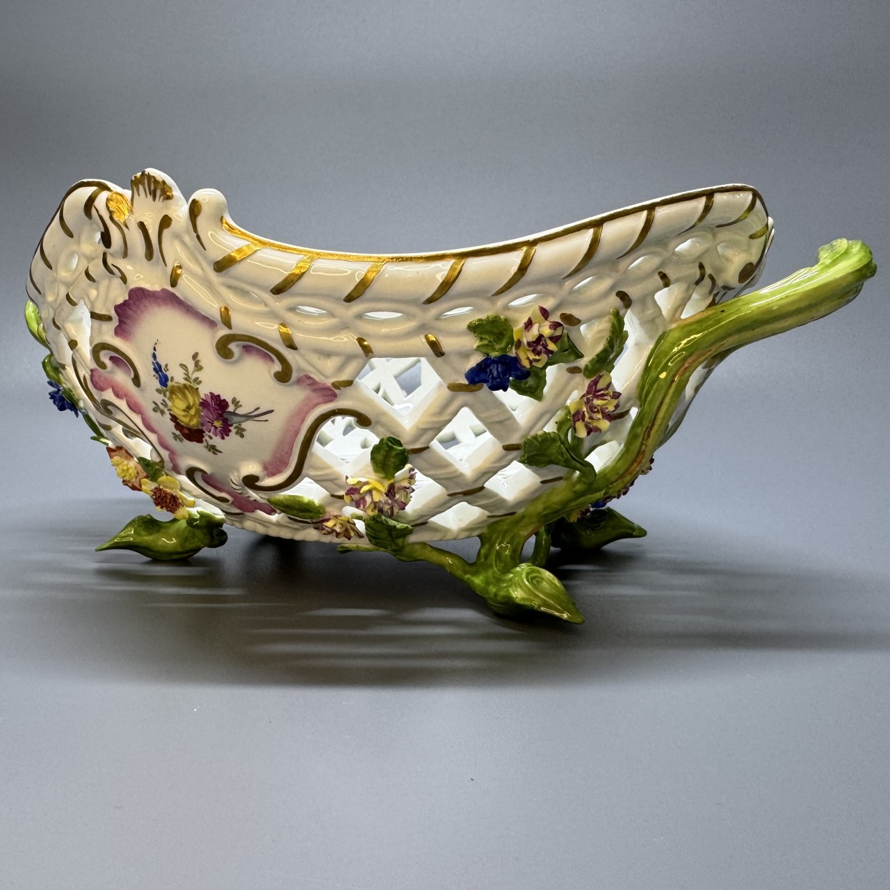 Вазочка ажурная. Германия, Мейсенская Государственная фарфоровая мануфактура, период Марколини 1774-1814 гг. Фарфор, роспись, золочение.
