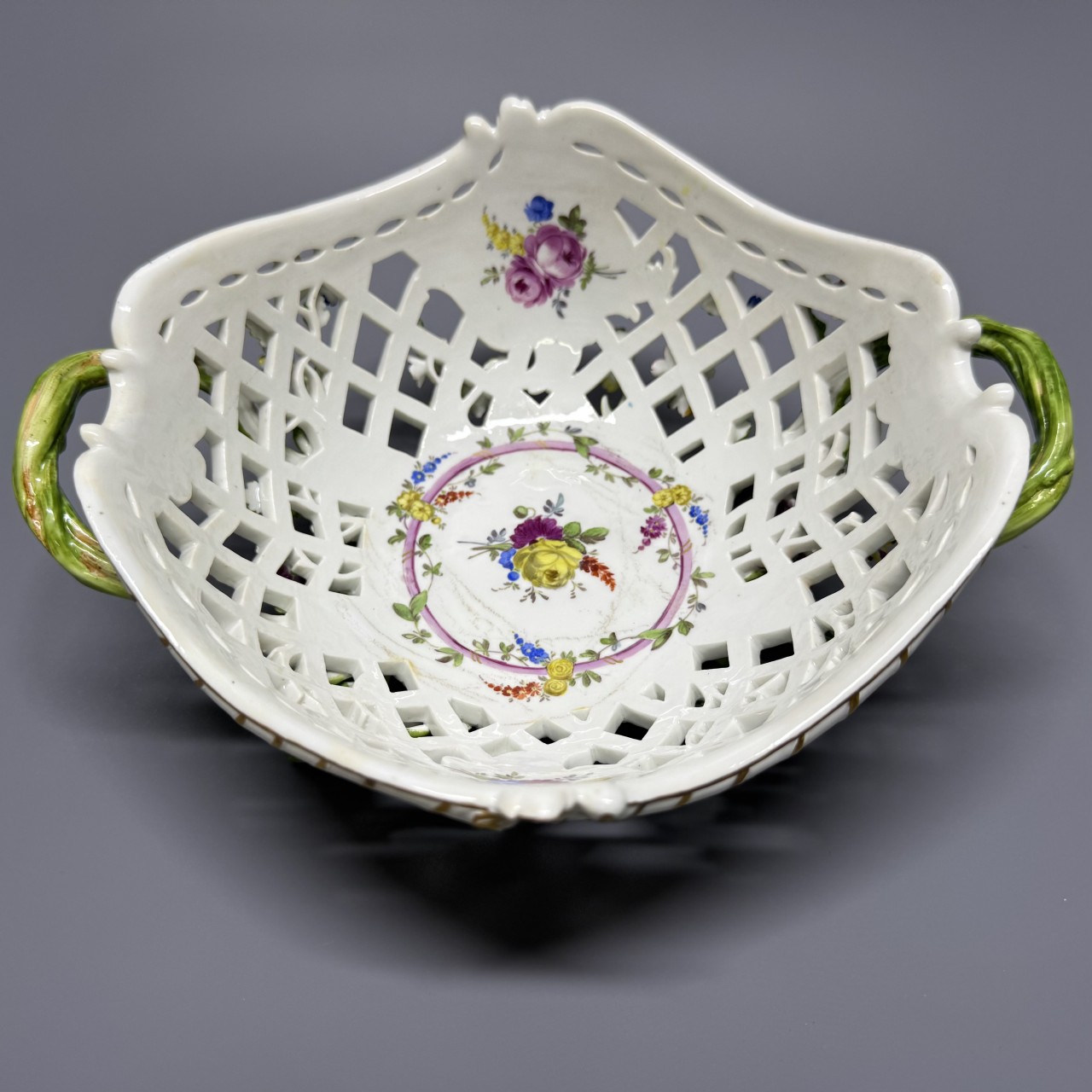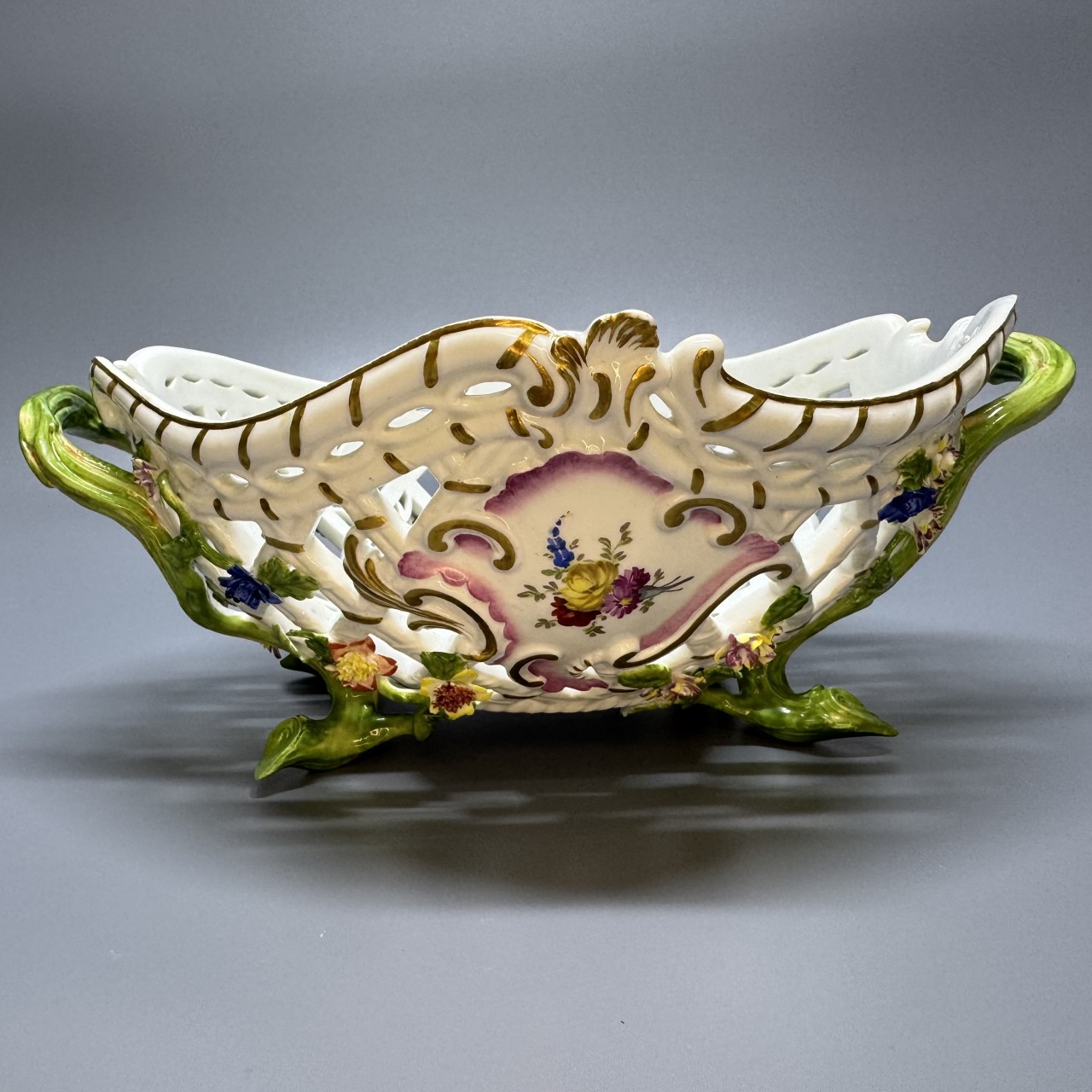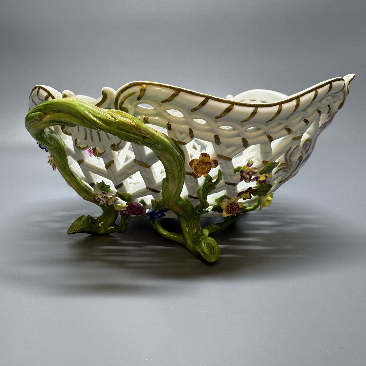 Вазочка ажурная. Германия, Мейсенская Государственная фарфоровая мануфактура, период Марколини 1774-1814 гг. Фарфор, роспись, золочение.