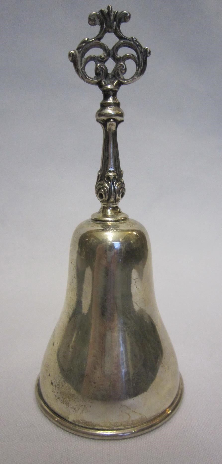 Колокольчик. Италия, середина ХХ века. Серебро, 925 проба. Размер: высота - 14 см.; диаметр - 6 см. Вес - 76 грамм.