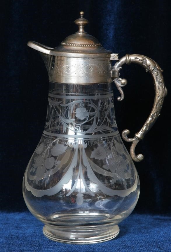 Кувшин малый. Европа. Конец XIX - начало XX века. Стекло, гравировка, металл, посеребрение.