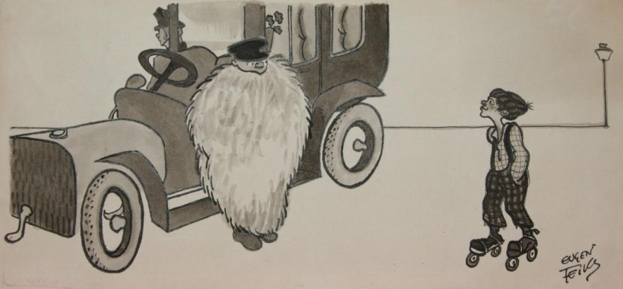 Eugen Feiks / Йену Фейкс (1878-1936) «Мы спортивные люди» для журнала «Meggendorfer-Blätter» № 987\137. 1909 год. Бумага, тушь. Размер: 16х35 см.