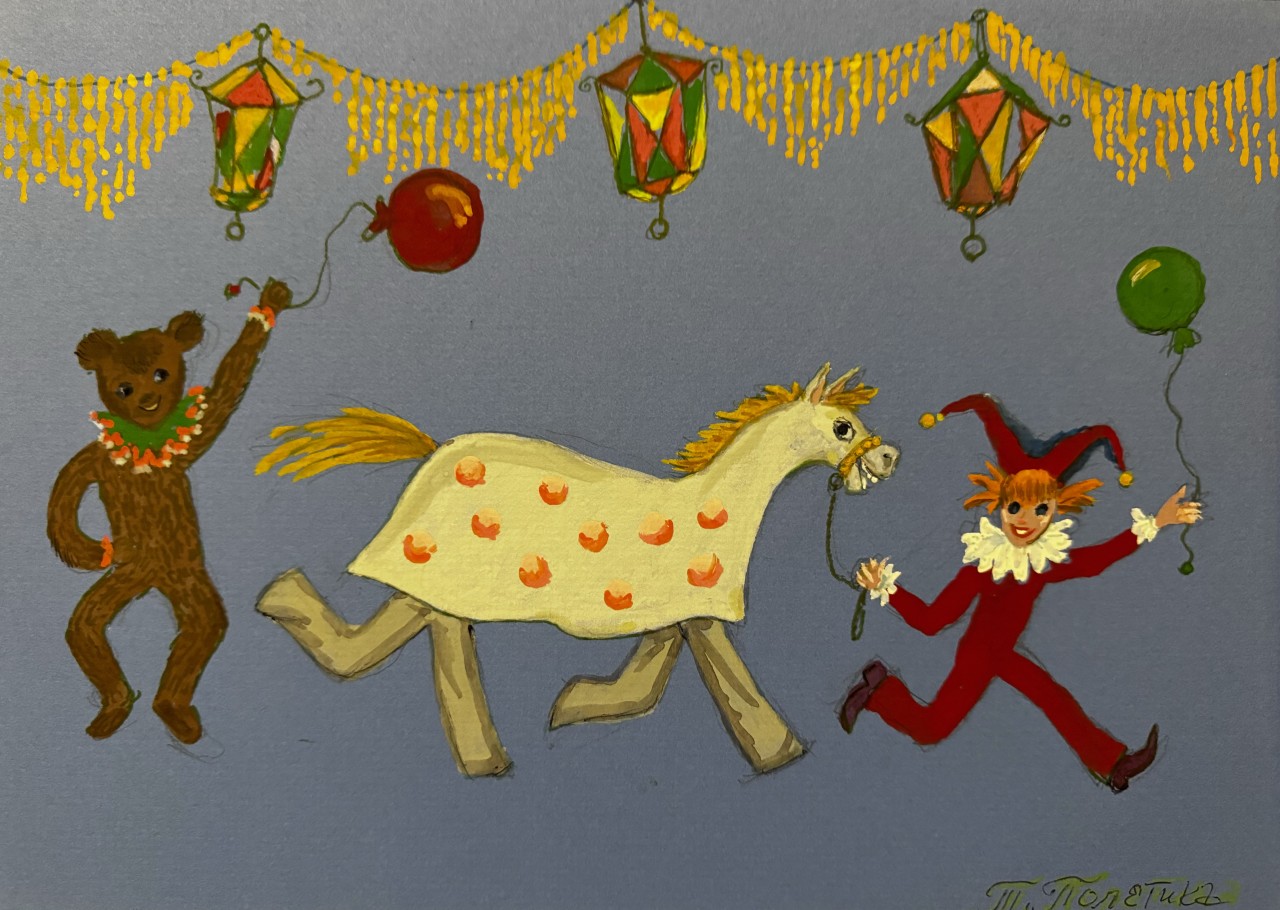 Полетика Тамара Владимировна (1922-2011) «Карнавал», 1970-е годы. Бумага, гуашь, карандаш.