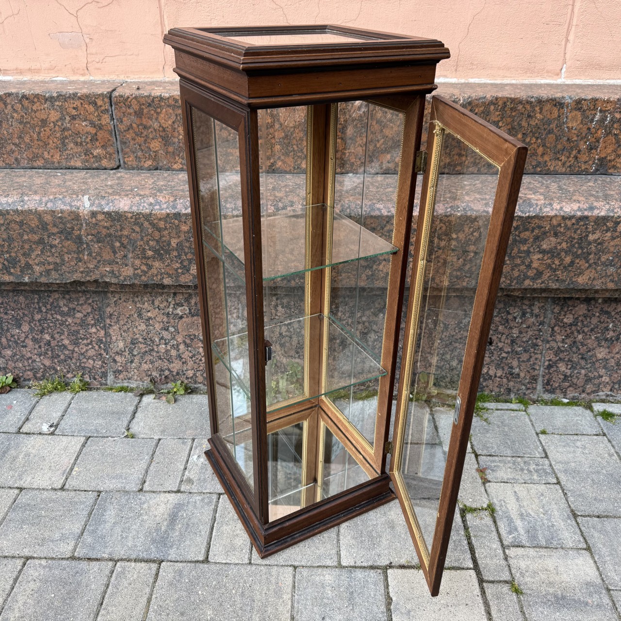 Консоль - витрина. Европа, конец ХХ века. Дерево, стекло, зеркальное полотно.