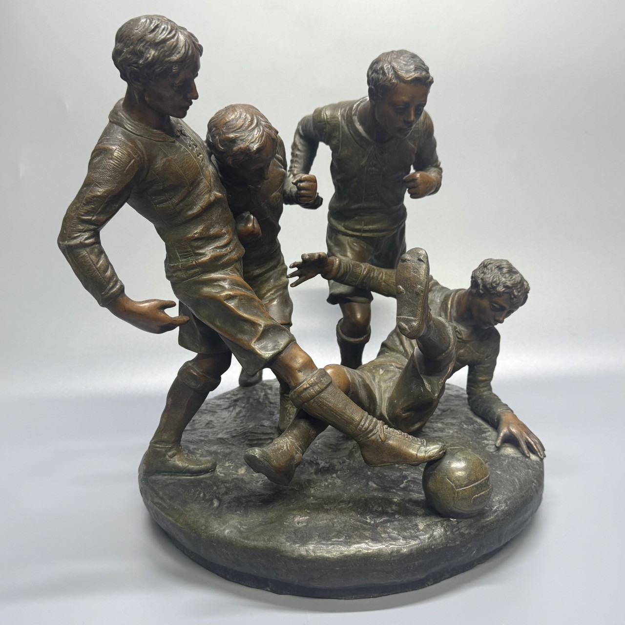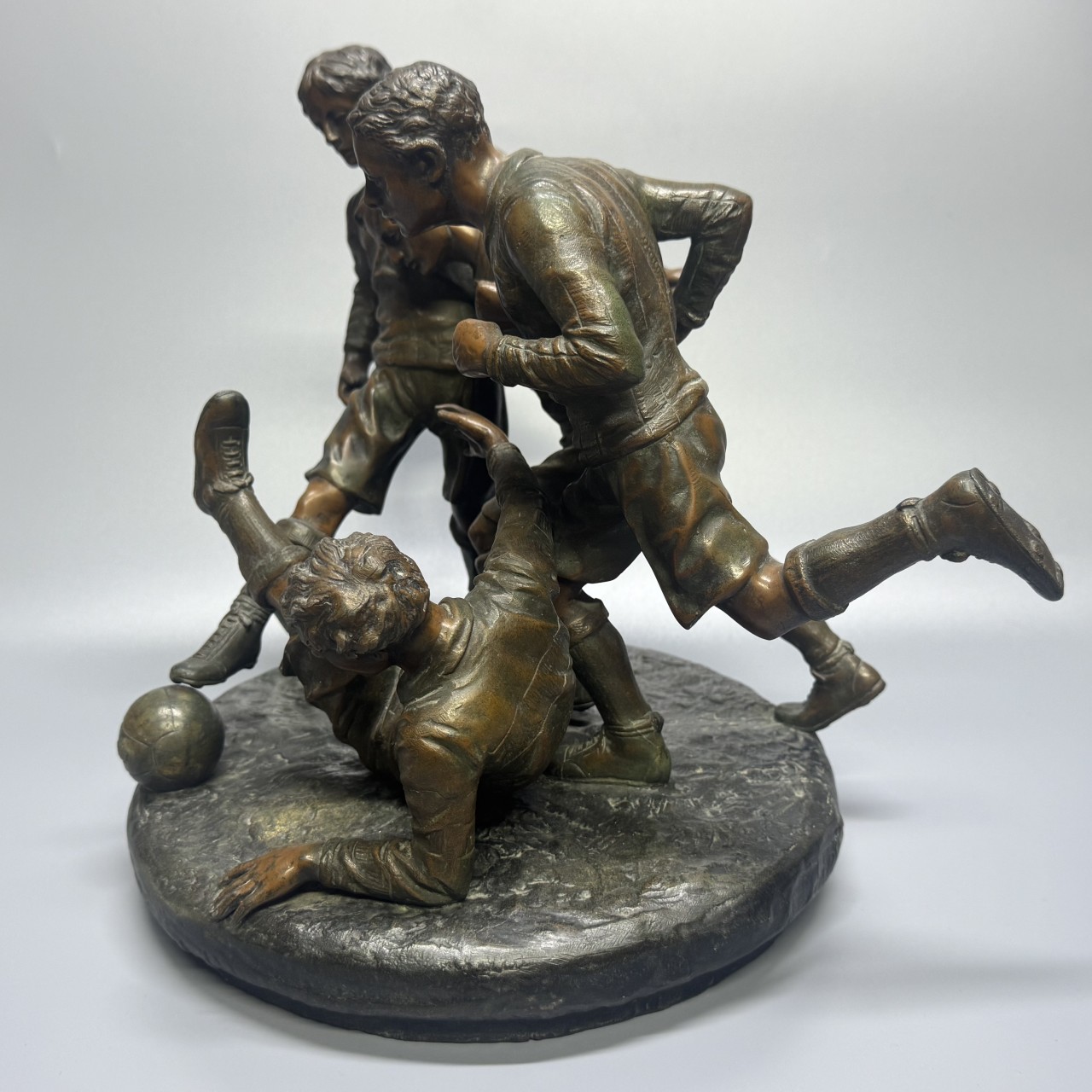 Скульптурная композиция «Футбол». Европа, 1900-1910-е гг. Скульптор: Pedro Ramоn Josе Rigual ( 1863–1917) французско-испанская школа). Сплав металлов, тонировка.