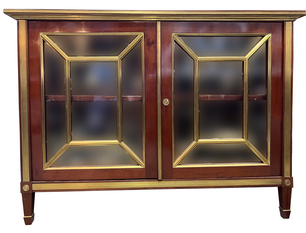 Шкаф книжный горизонтальный в стиле жакоб. Российская Империя, XIX век. Красное дерево, латунь, стекло.