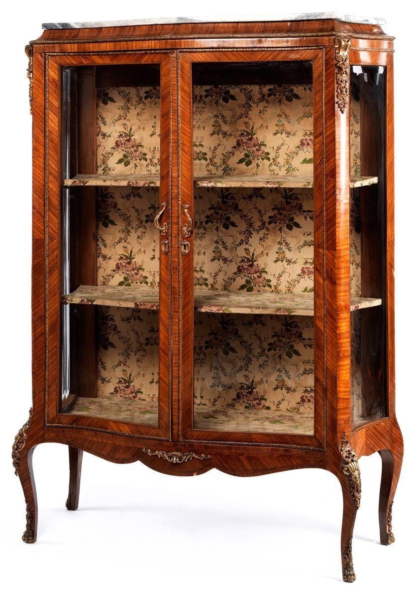 Шкаф-витрина в стиле необарокко. Дерево, бронзовые накладки, мрамор, оригинальная обивка. Европа, XIX век.