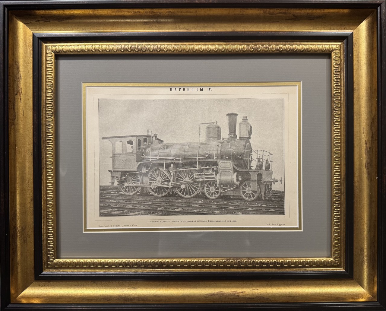 Гравюра «ПАРОВОЗЫ IV». Российская Империя, начало ХХ века. Брокгауз и Ефрон «Энцикл. Слов.».