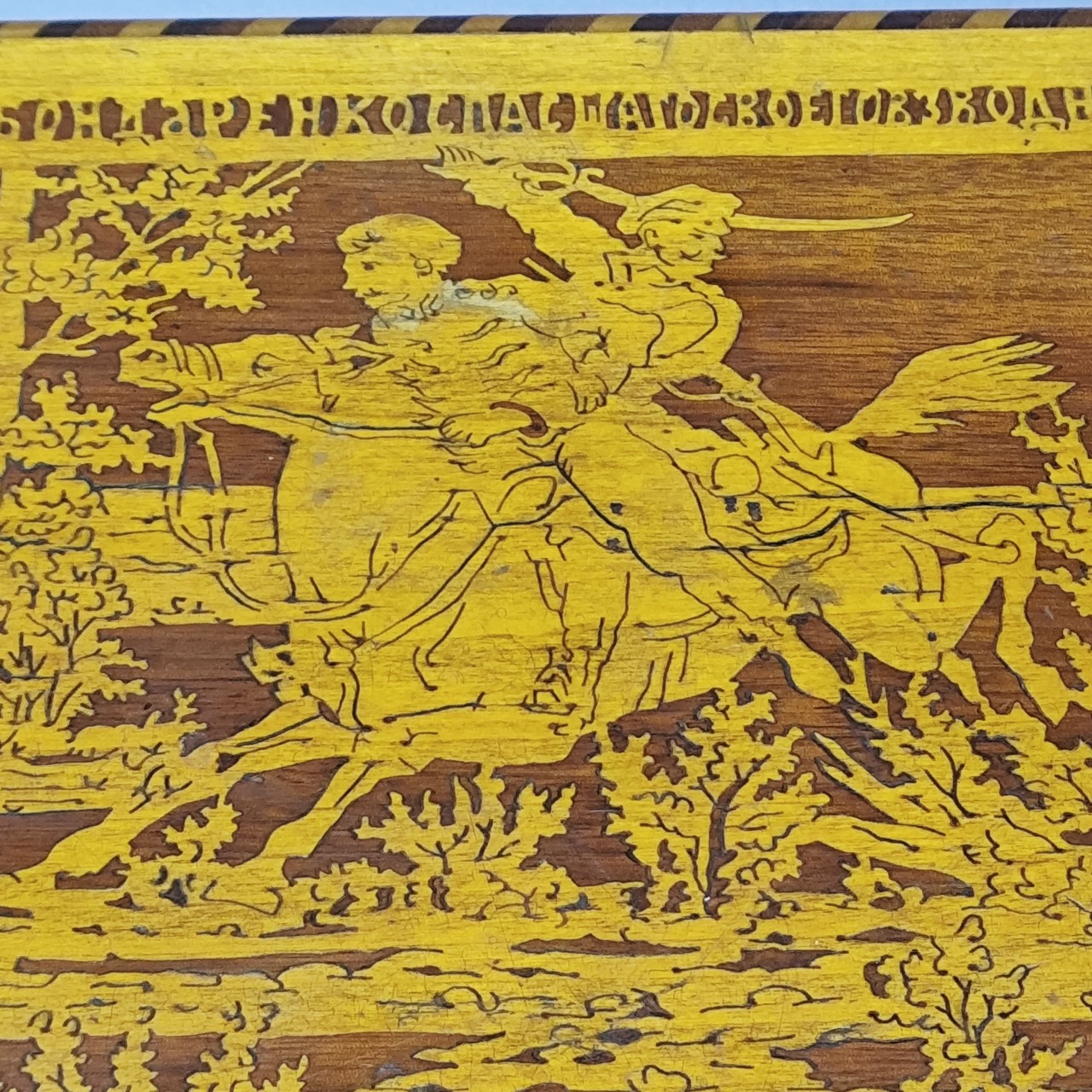Походная полковая шкатулка с изображением батальных сцен Ахтынского гусарского полка Бондаренко 11 июля 1877 года.