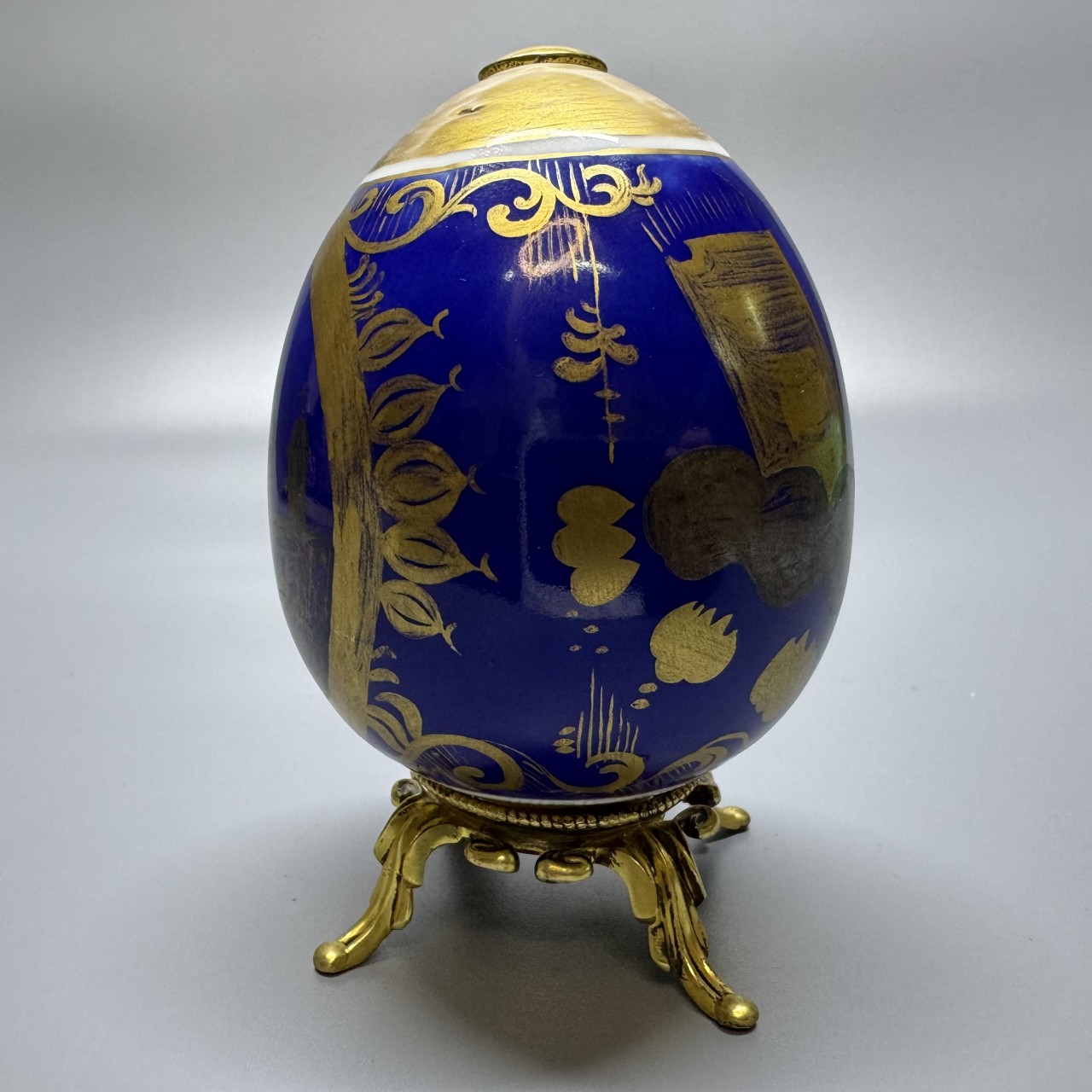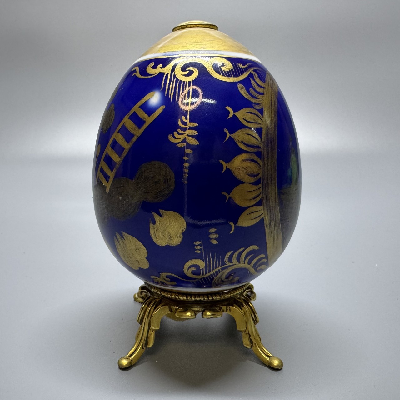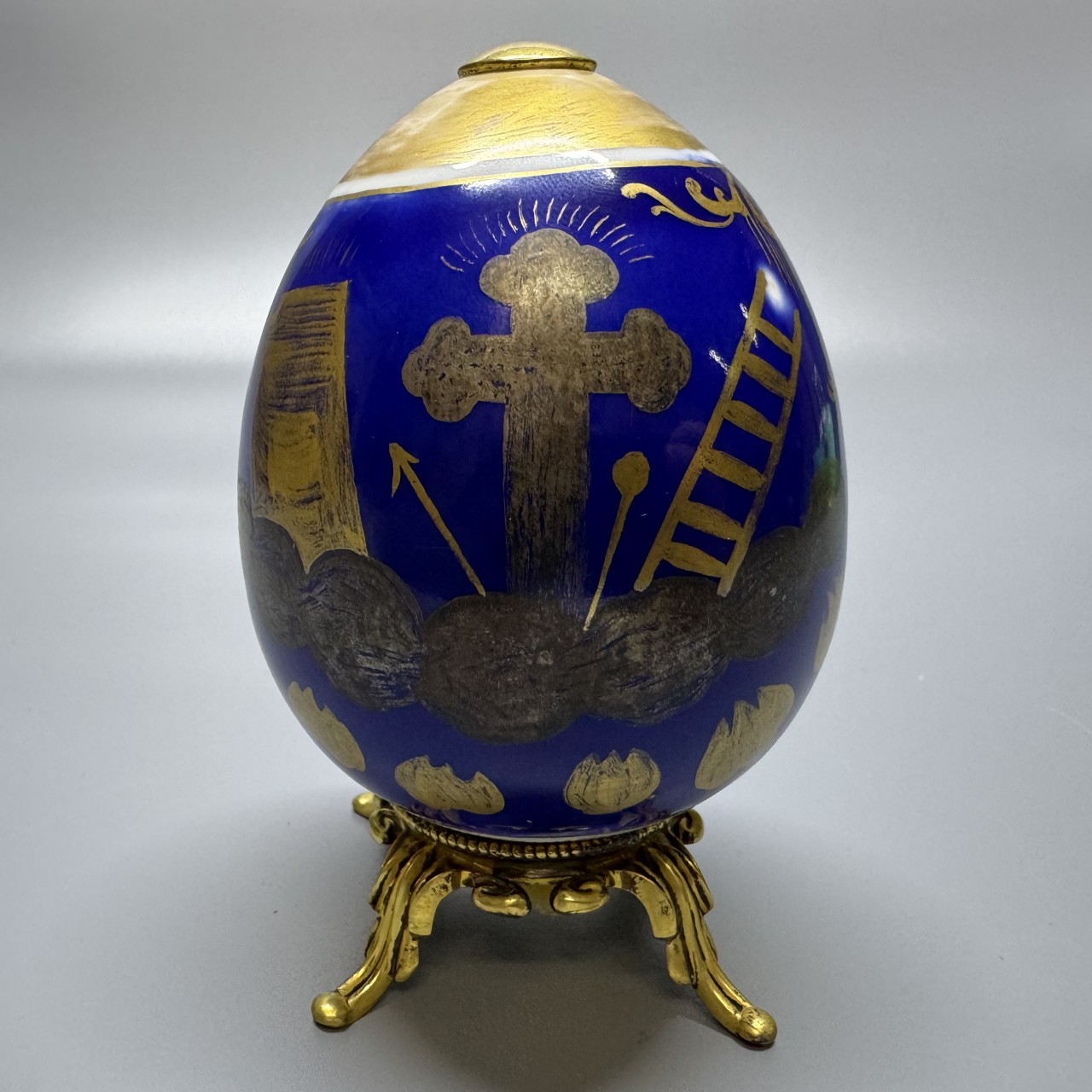 Яйцо пасхальное с изображением храма. Российская Империя, середина XIX века, частный фарфоровый завод. Фарфор, крытье кобальтом, роспись золотом.
