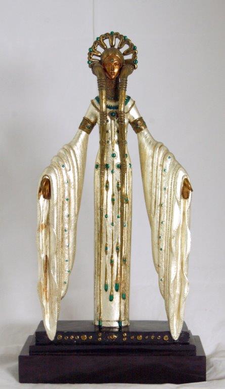 Скульптура «Византия». Франция, США, 1987 год. Скульптор: Эрте (наст. фамилия и имя Тыртов Роман Петрович, 1892-1990). Бронза патинированная тонированная посеребренная эмалированная. Литьё, чеканка, гравировка, патинирование, тонирование, эмалирование. Подписи и клейма: на основании – «1987», «CHALK & VERMILION AND SEVEN ARTS 43 / 375». Высота с постаментом – 50 см.