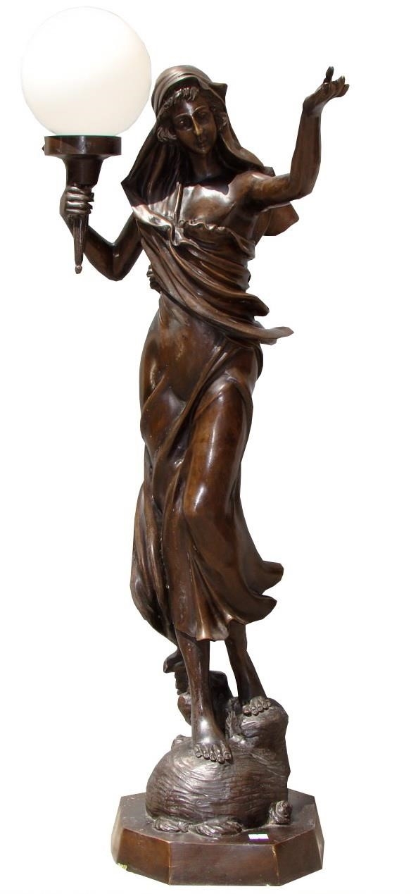 Лампа «Девушка с факелом». Европа, конец XIX века. Бронза, литьё, патинирование. Высота - 100 см.