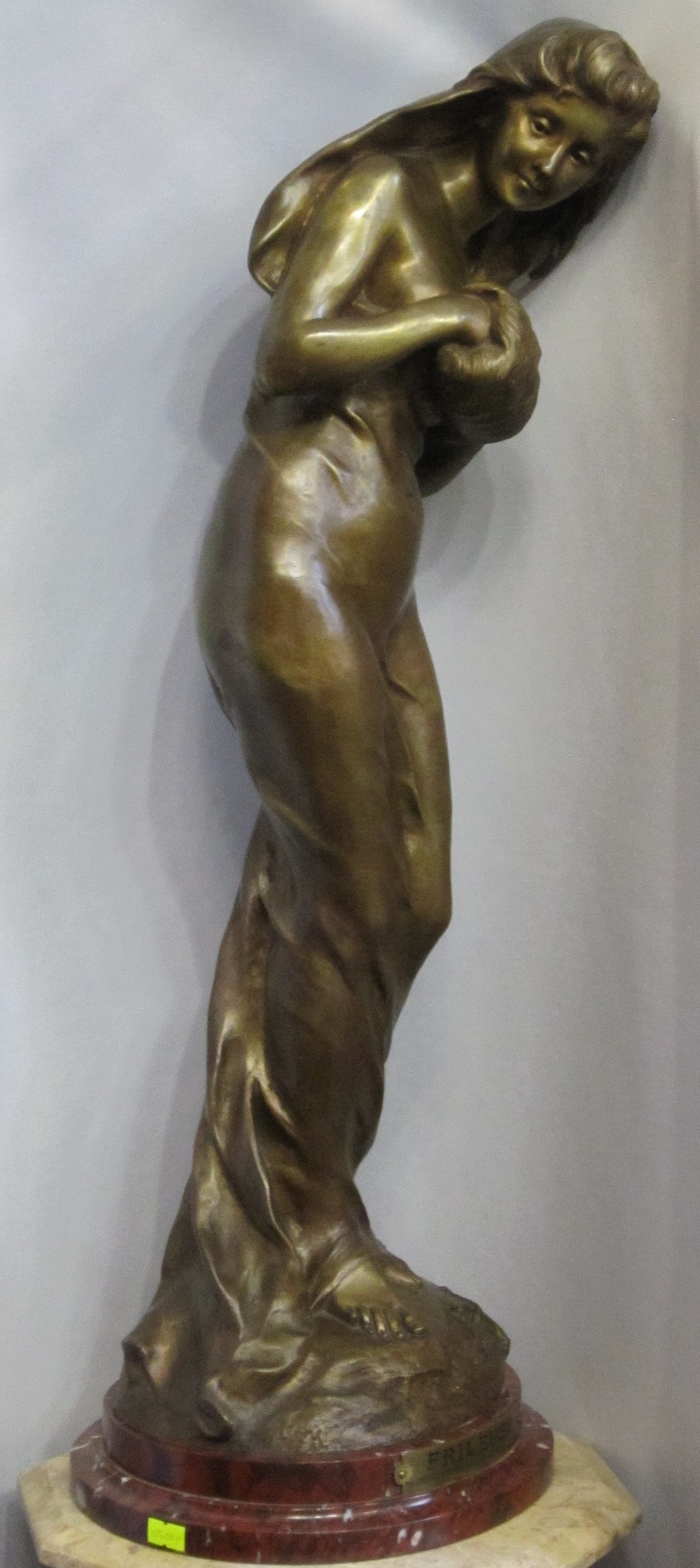 Скульптура «Зябко» («Frileuse»). Франция, конец XIX – начало ХХ века. Скульптор: Sylvain KINSBURGER (1855-1935). На мраморном основании имеется табличка: «Medaille d'Or au Salon», свидетельствующая, о том, что эта скульптура экспонировалась на Парижском Салоне и завоевала Золотую медаль. Бронза, литьё, патинирование, мрамор. Высота - 73 см.