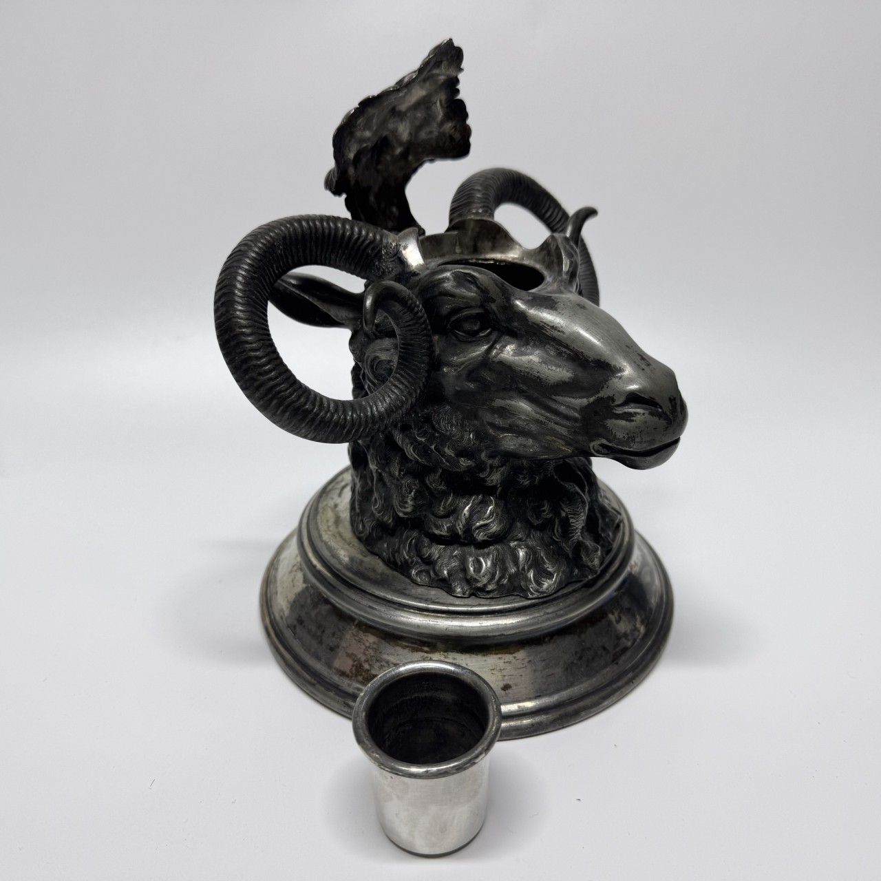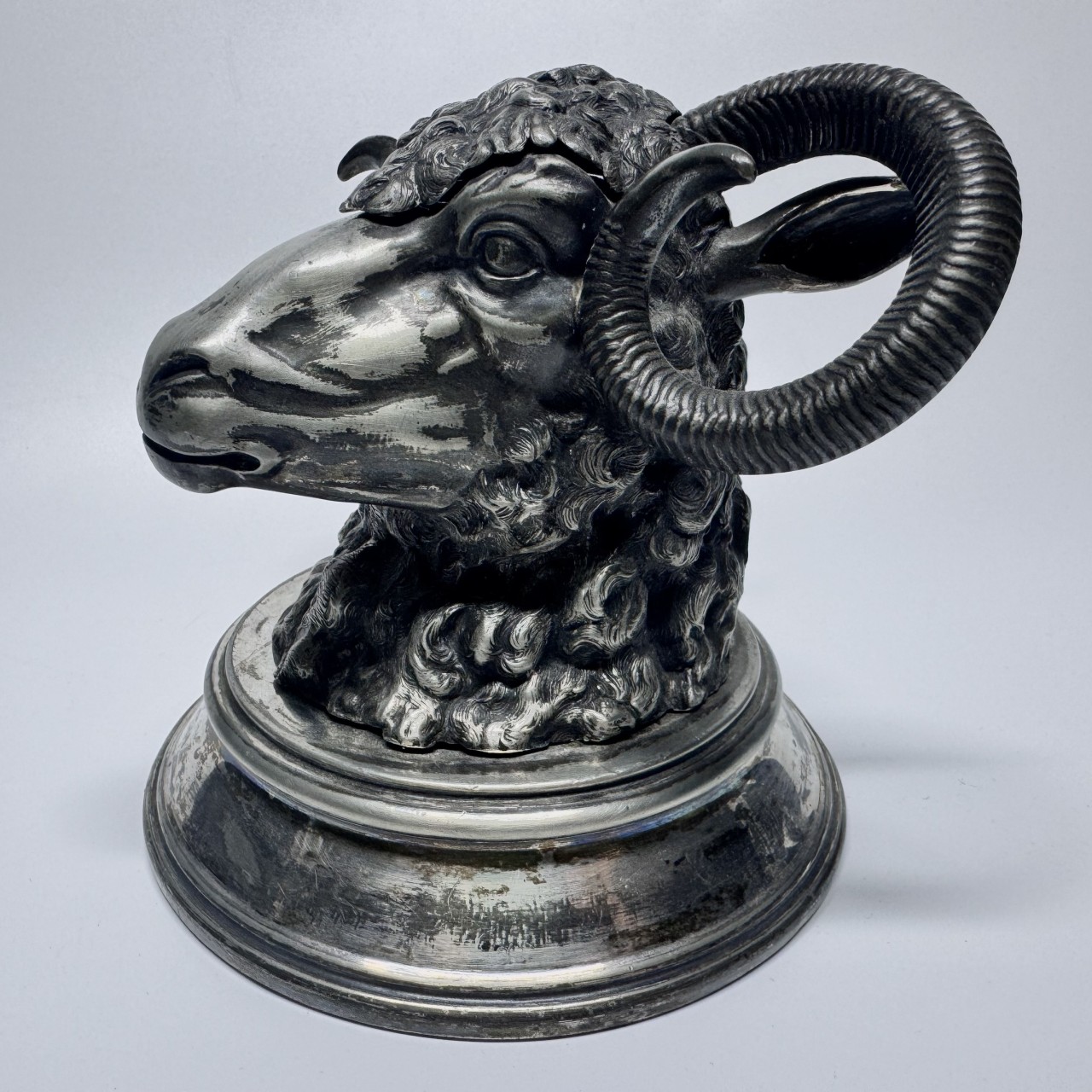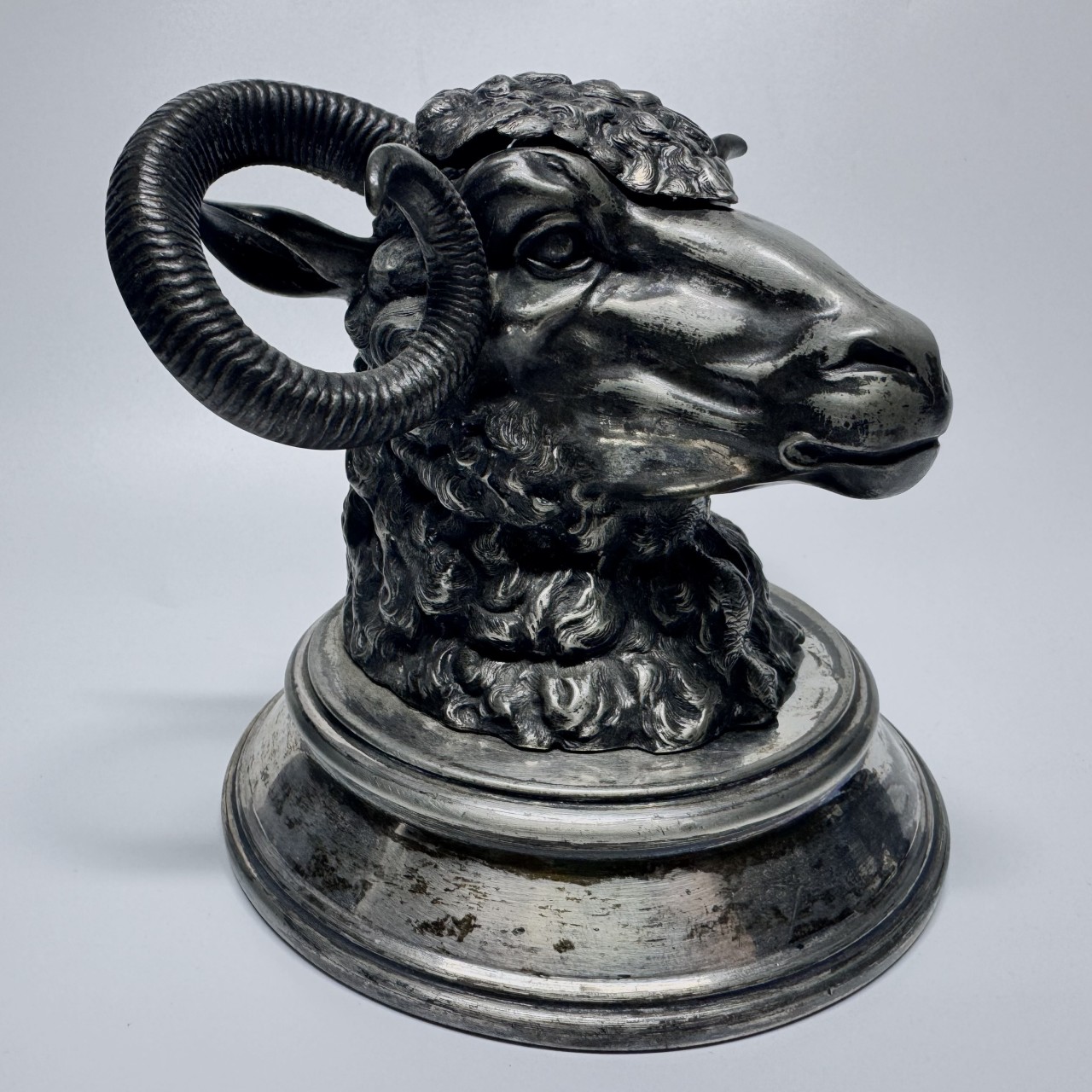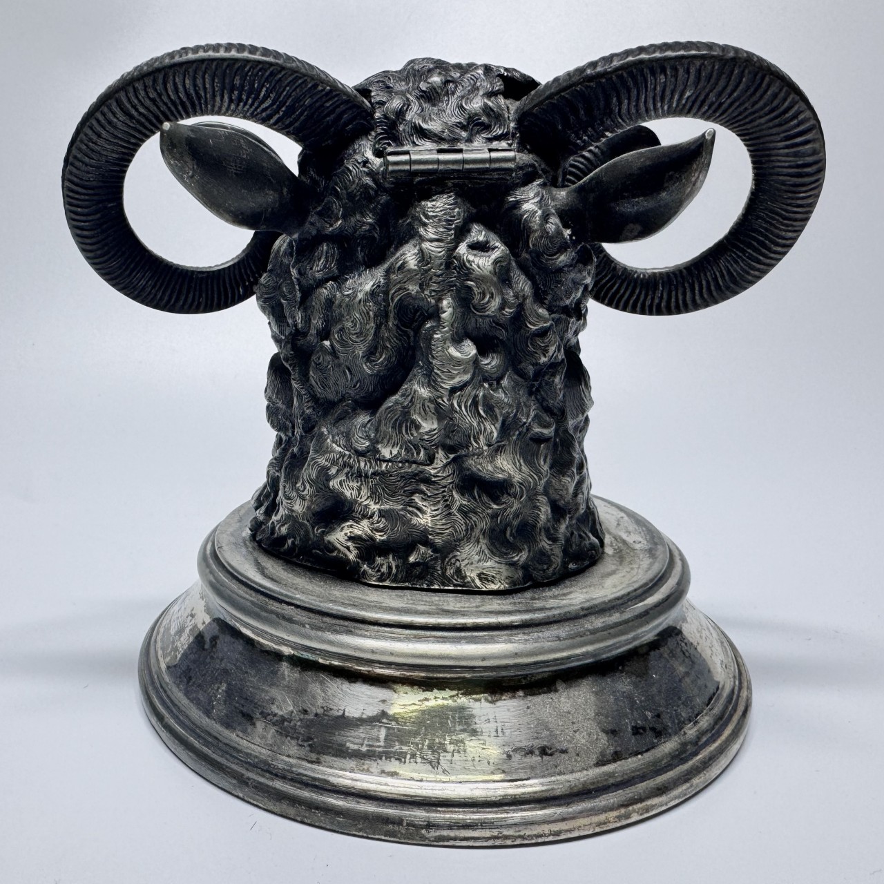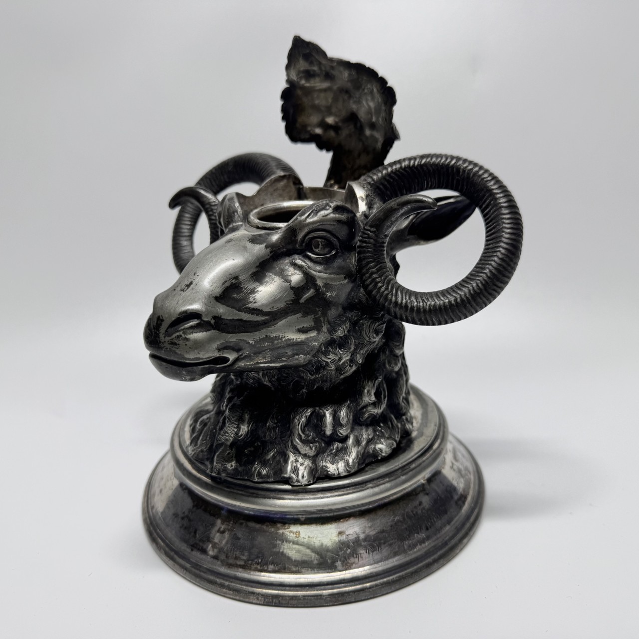Чернильница «Овен». Англия, Шеффилд, James Deakin & Sons (1871-1939). Металл, серебрение.