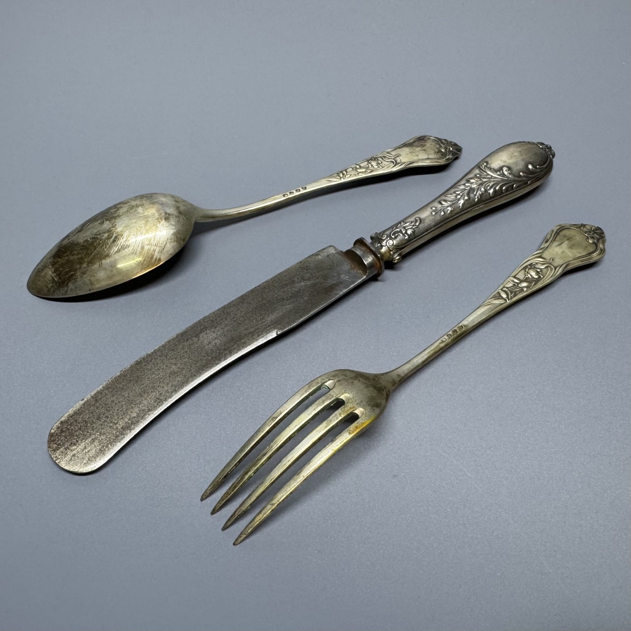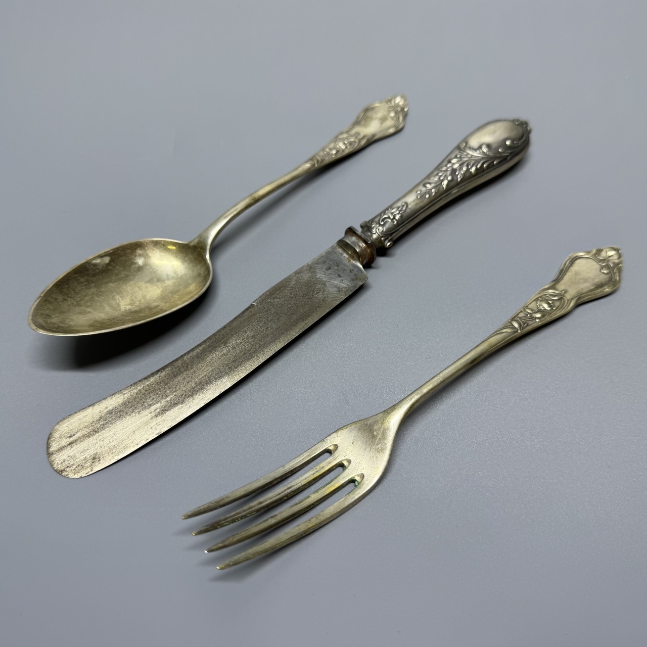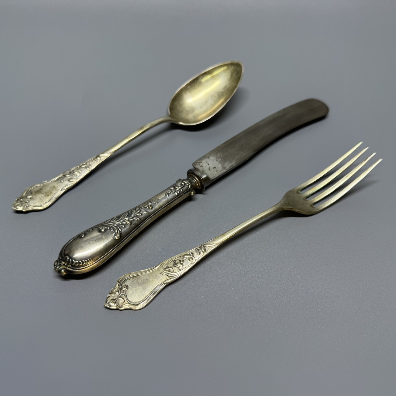 Столовый набор «Эгоист». Германия, Пфорцхайм (Pforzheim), мануфактура Lutz & Weiss, конец XIX – начало ХХ вв. Серебро 84 пробы.