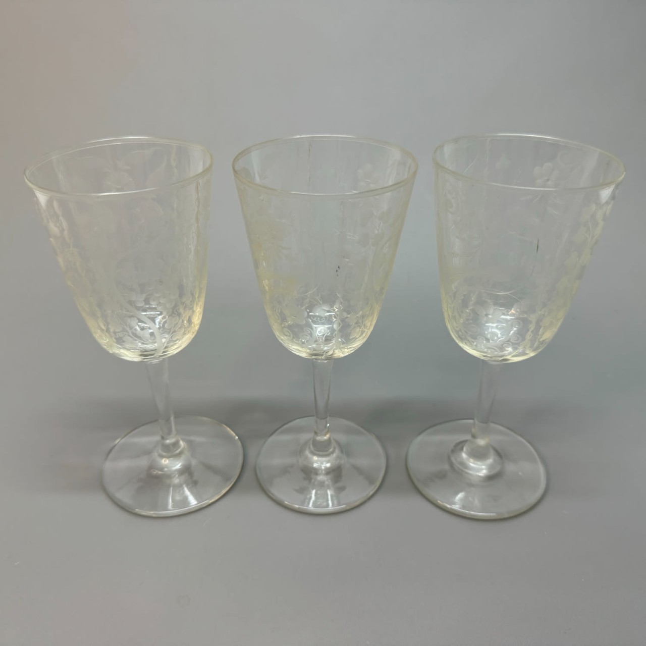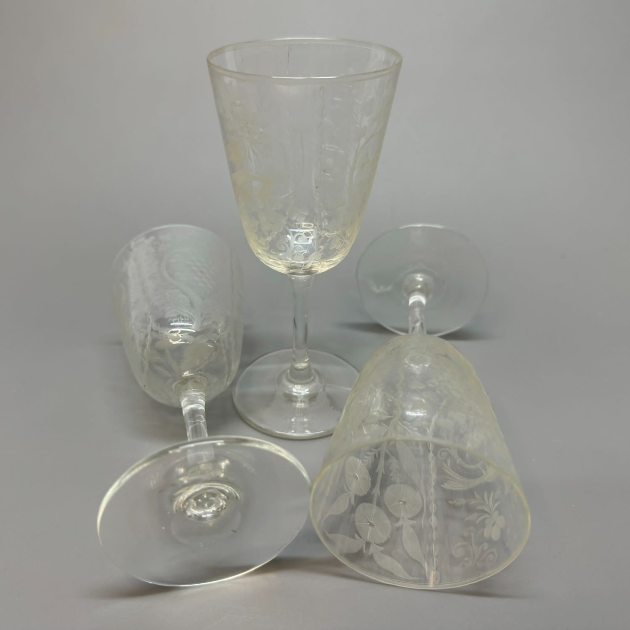 Бокалы "Жар-птица". 3 шт. Европа, XIX век. Стекло, гравировка.