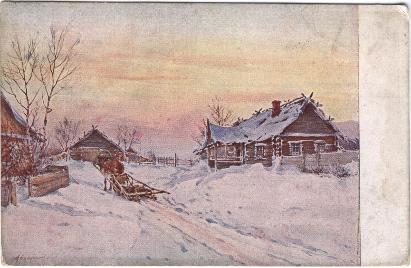 Похожая работа художника опубликована на открытом письме: «Морозное утро» («Gelée matinale», «A frosty morning») / М.А. Балунин. - Любань: изд. Любанск. о-ва попеч. о бедн., ценз. 1916. - Цветная автотипия: 9,2х14,2 см.