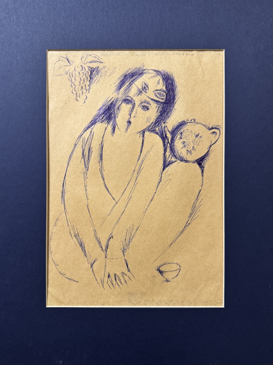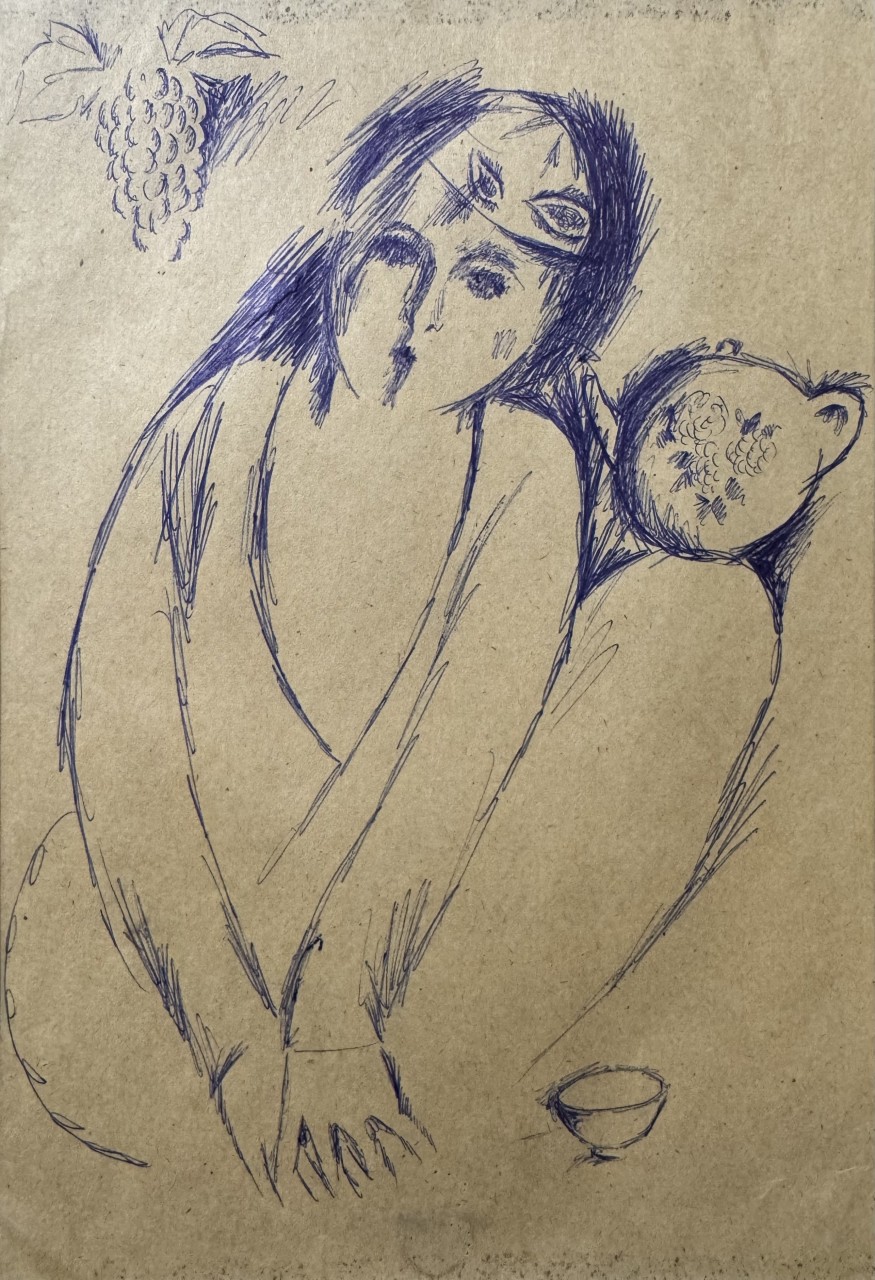 Хамдамов Р. «Девочка с чайником», 1970-е гг. Бумага, шариковая ручка. Размер в свету: 28,7х20 см.