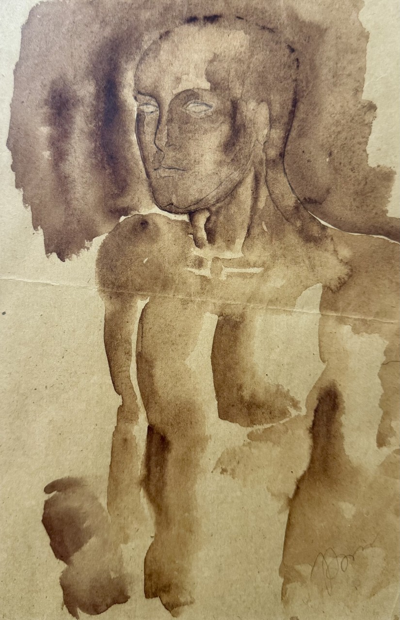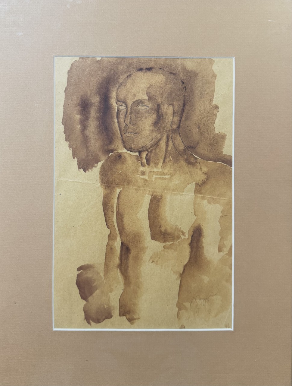 Хамдамов Р. «Портрет», 1970-е гг. Бумага, шариковая ручка, акварель. Размер в свету: 29,6х19,2 см.