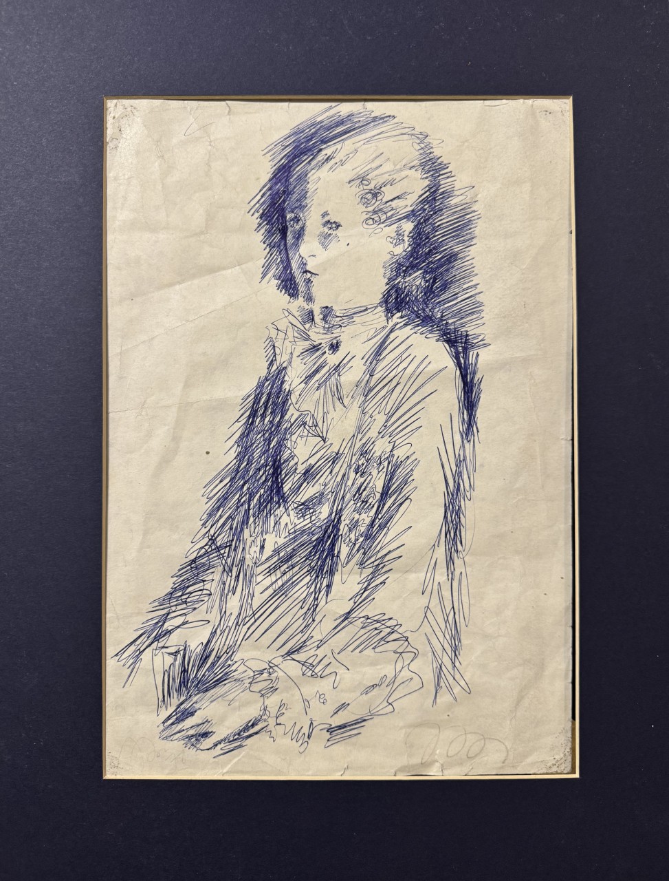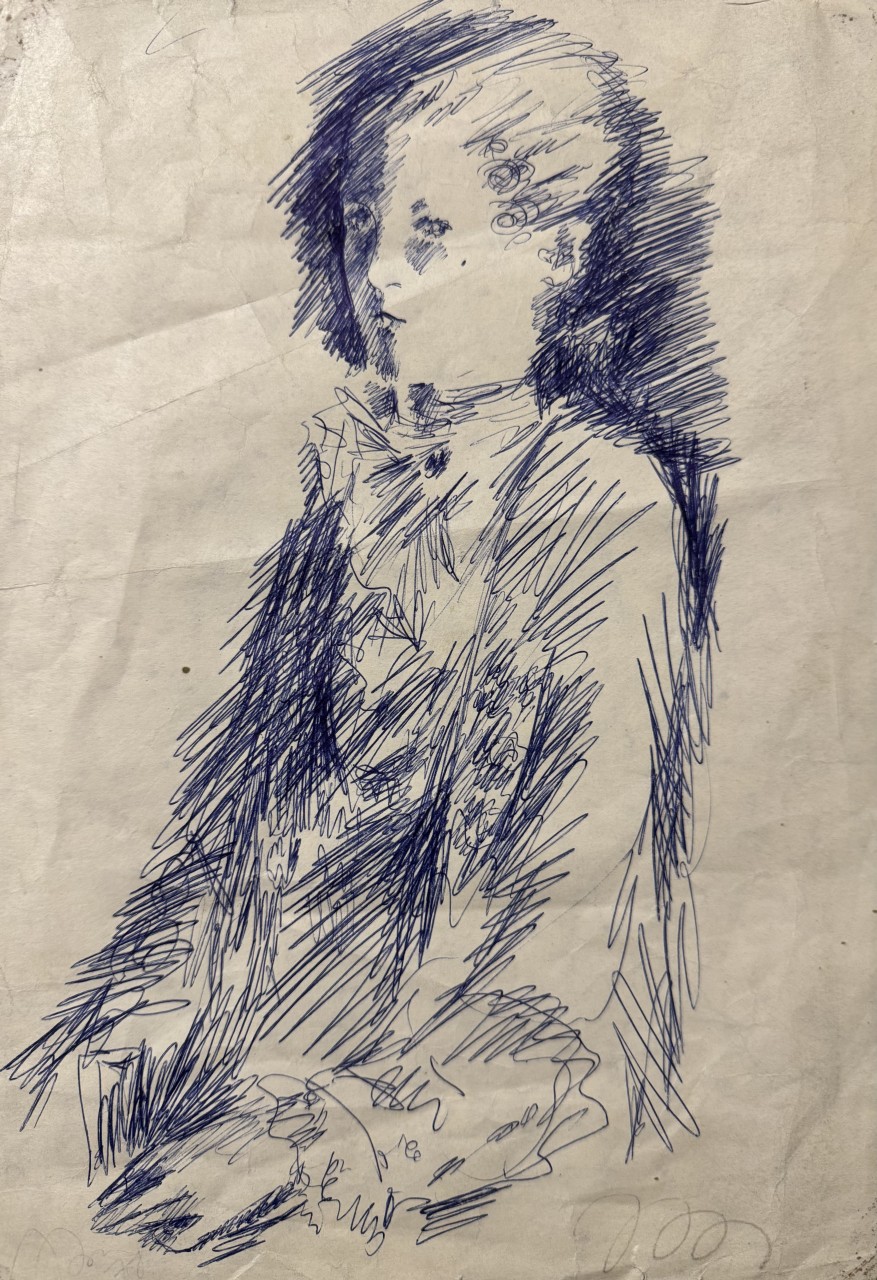 Хамдамов Р. «Юноша в камзоле», 1970-е гг. Бумага, шариковая ручка. Размер в свету: 29,7х20,5 см.