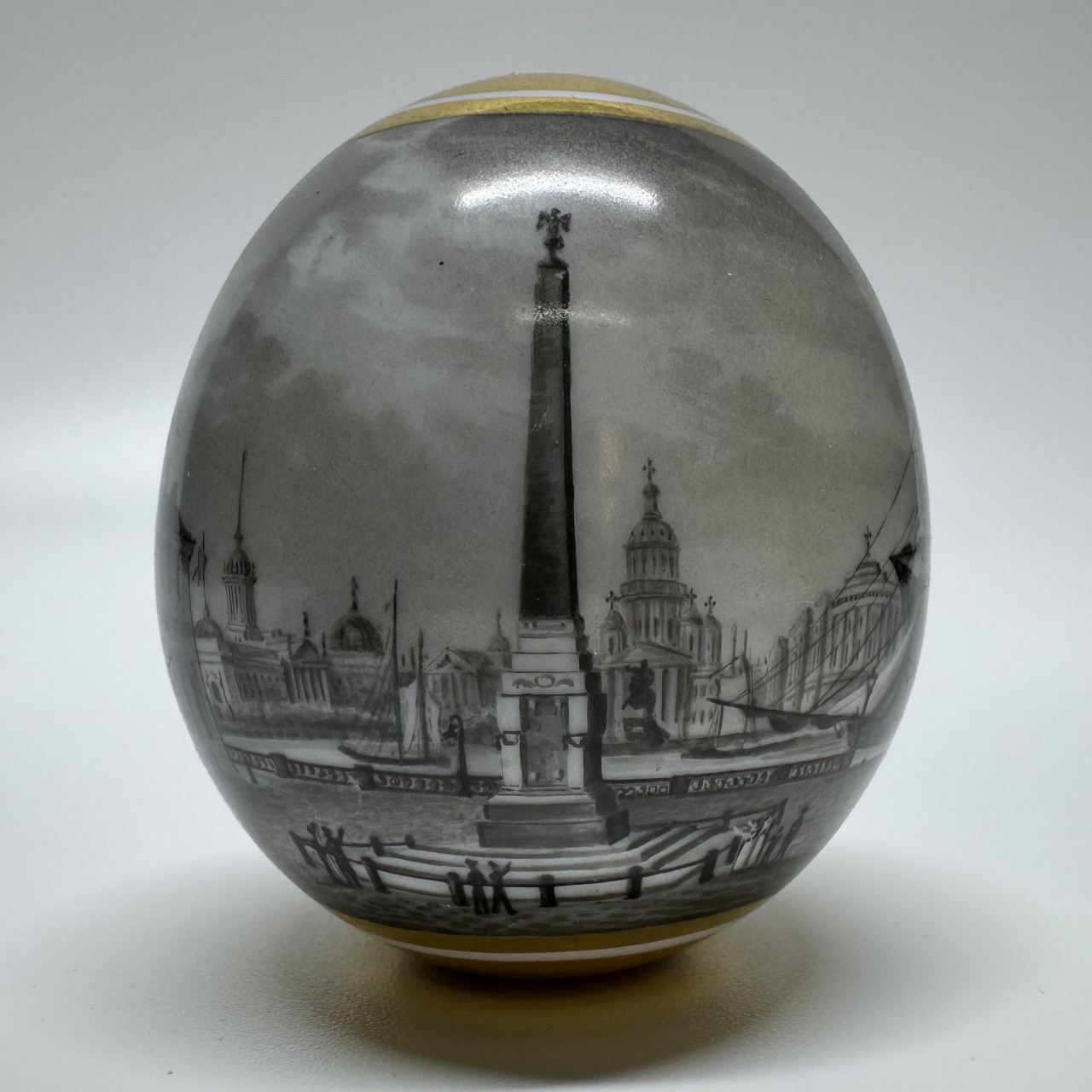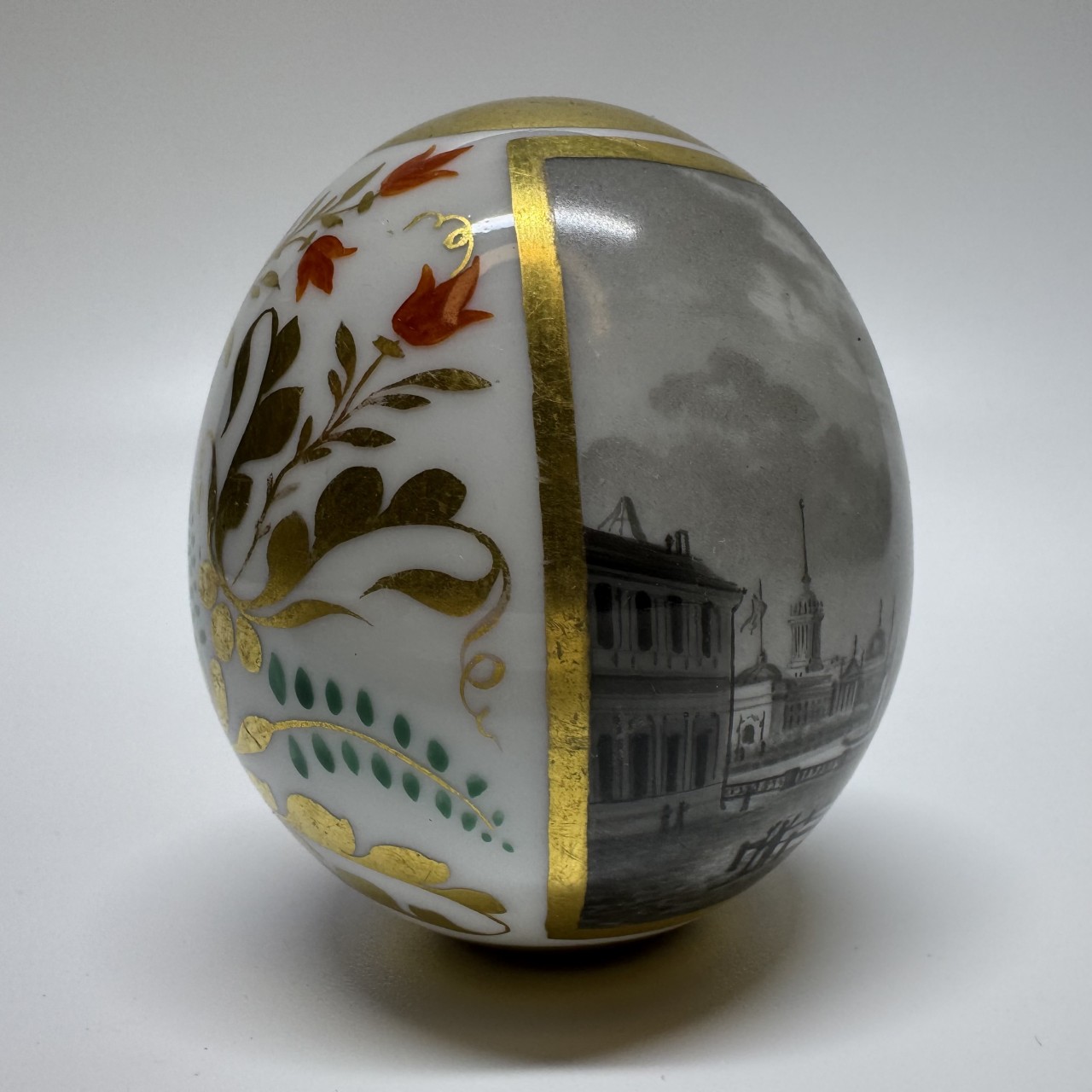 Яйцо пасхальное «Санкт-Петербург». Российская Империя, Императорский фарфоровый завод (ИФЗ), середина XIX века. Фарфор, роспись, золочение, цировка.