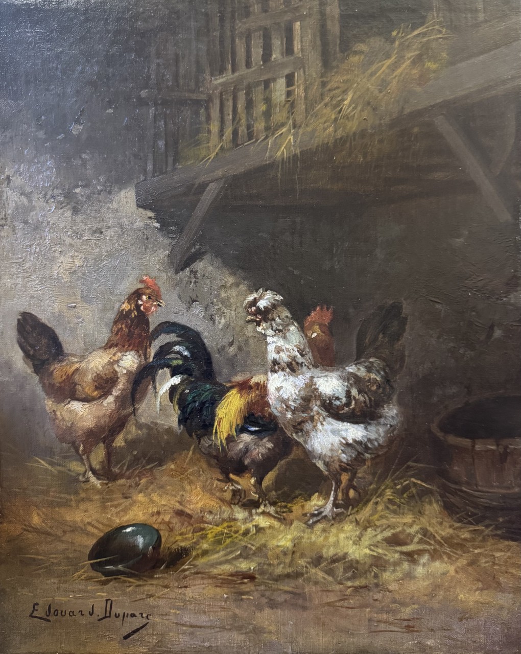 Edouard Dupare «Птичий двор». Европа, конец XIX - начало ХХ века. Холст, масло. Размер: 41,3х33 см.