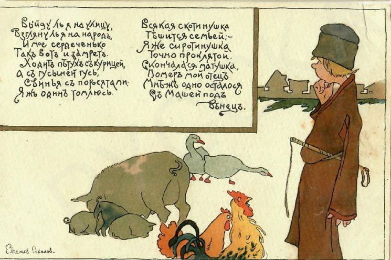 Евгений Гаврилович Соколов — русский художник, один из самых активных московских графиков в области открытки: рисовал подборки открыток на темы народных песенок и русских пословиц.