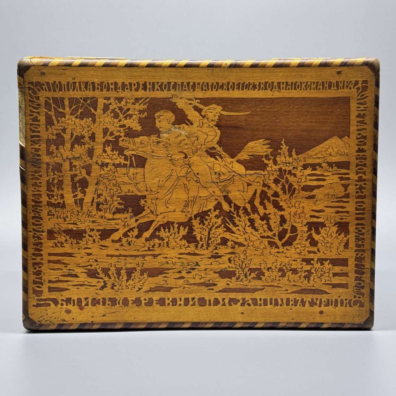 Походная полковая шкатулка с изображением батальных сцен Ахтынского гусарского полка Бондаренко 11 июля 1877 года.
