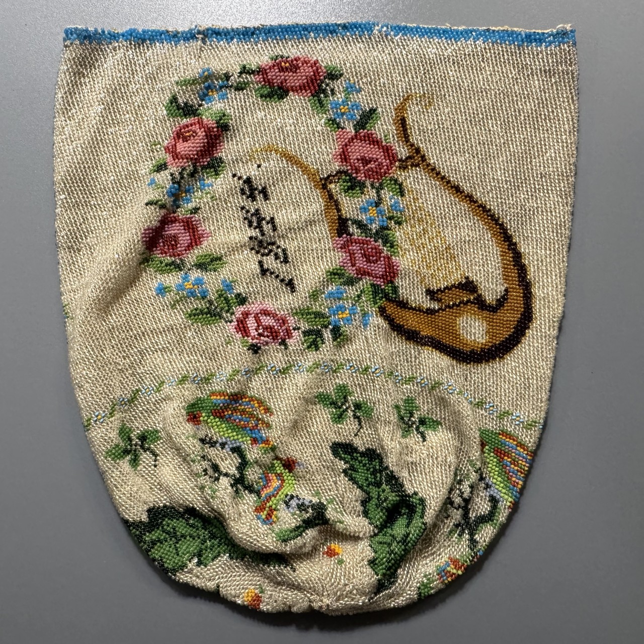 Сумочка (кисет) «K. Essenko» (фамилия владельца). Российская Империя, 1844 год. Бисер мелкого диаметра, плетение.