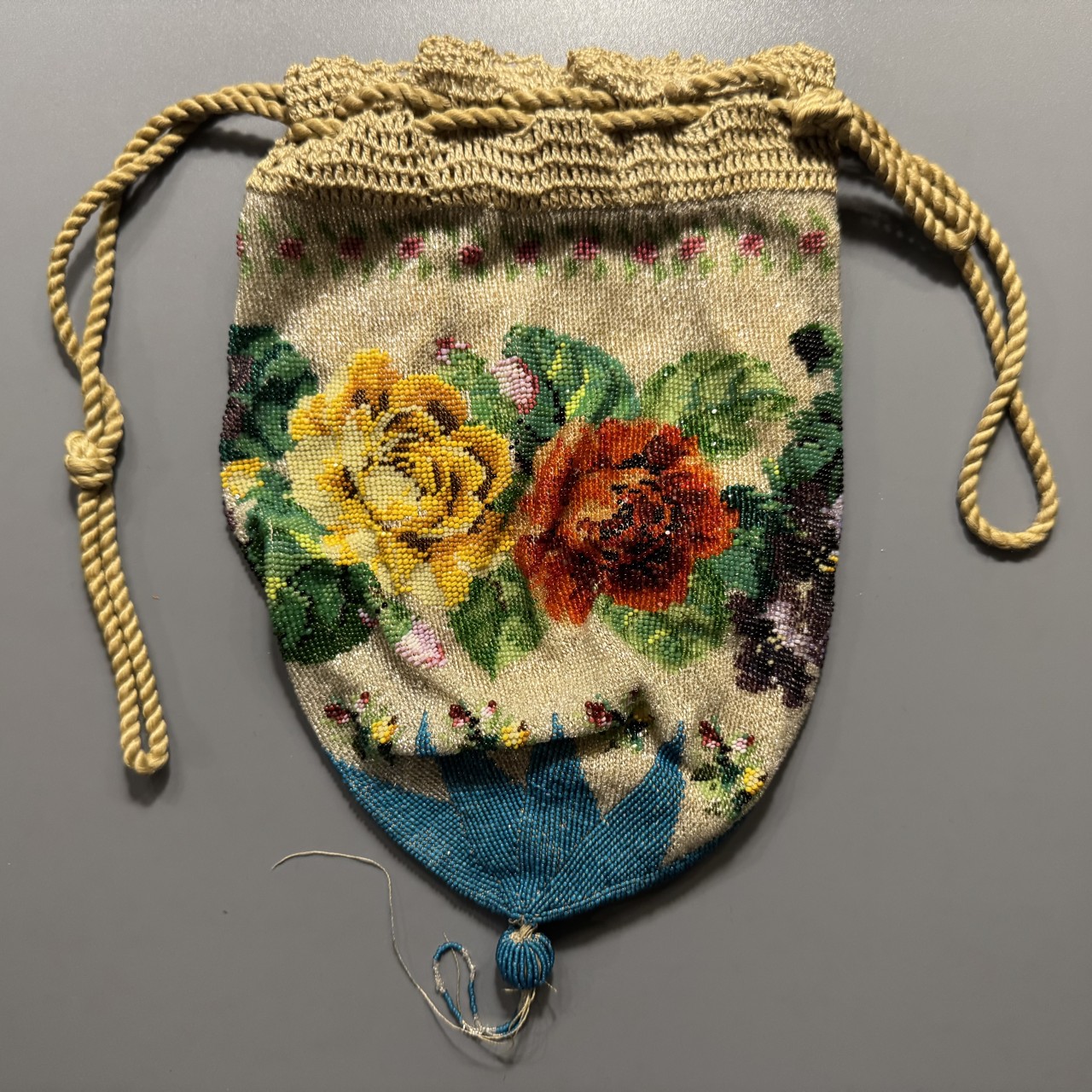 Сумочка (кисет) «Розы». Российская Империя, середина XIX века. Бисер, плетение.