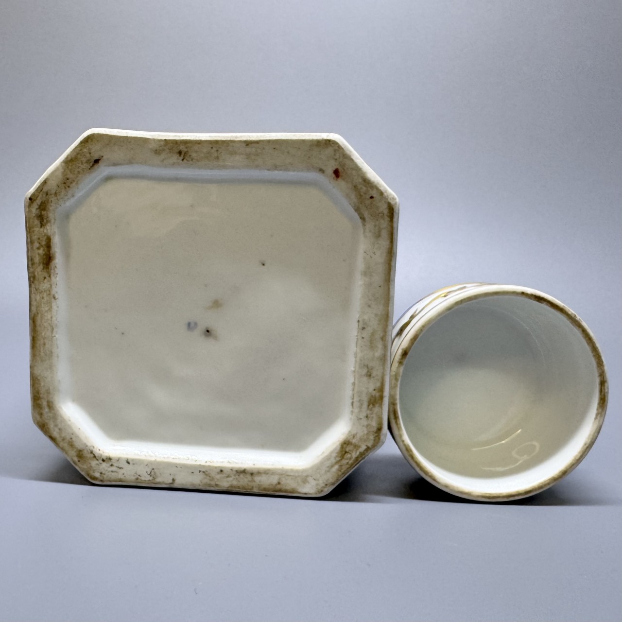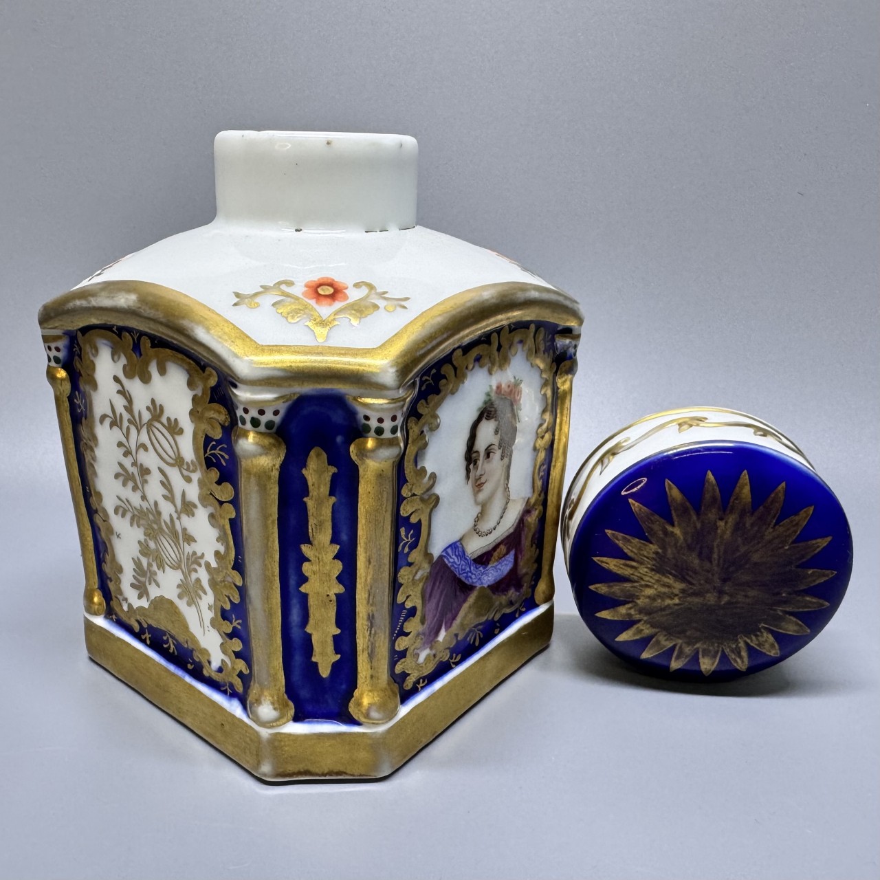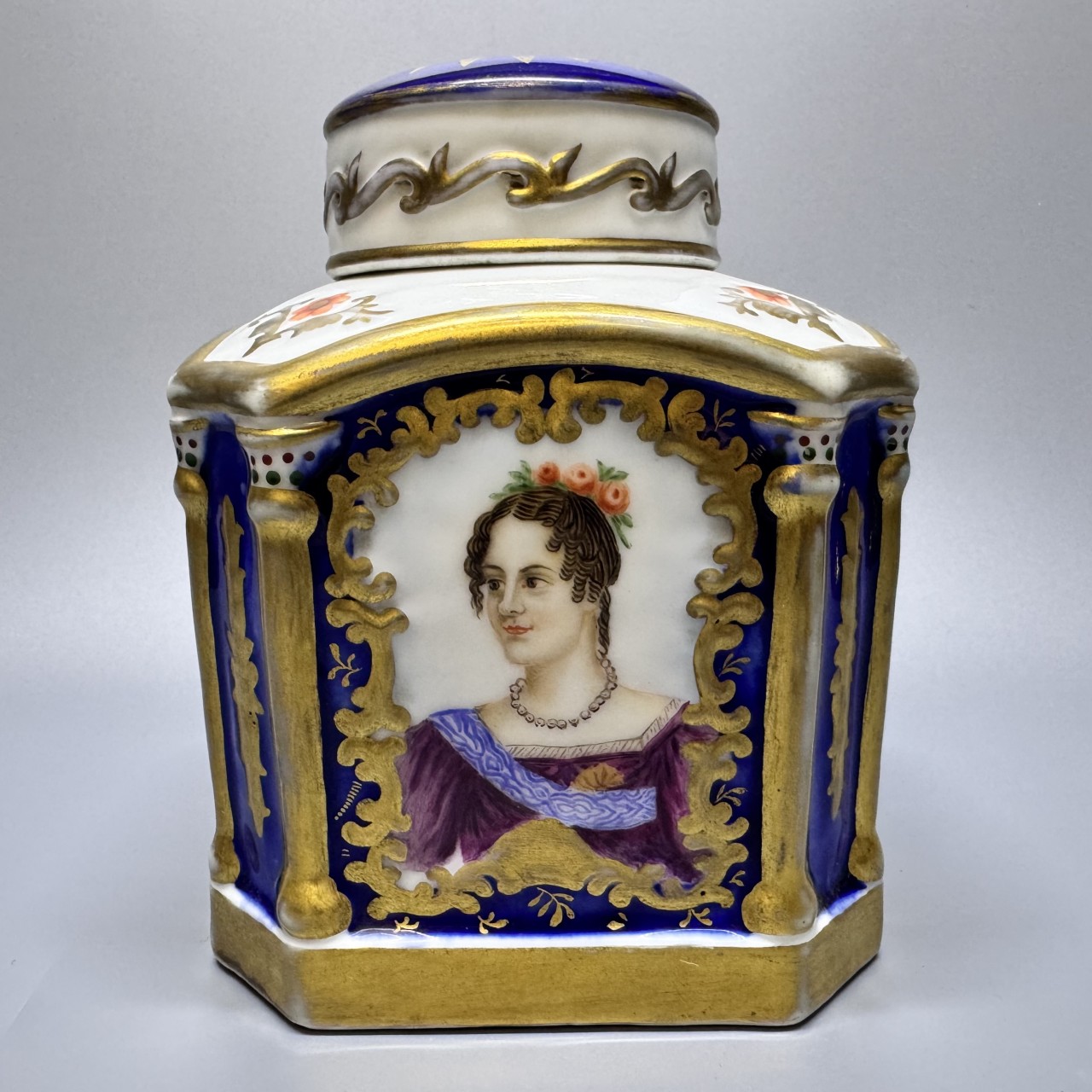 Чайница с крышкой «Портрет Николая I и Александры Федоровны». Российская Империя, завод А.Т. Сафронова (заводы Гжели), 1830-е гг. Фарфор, роспись, золочение.