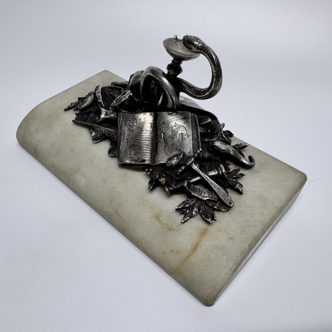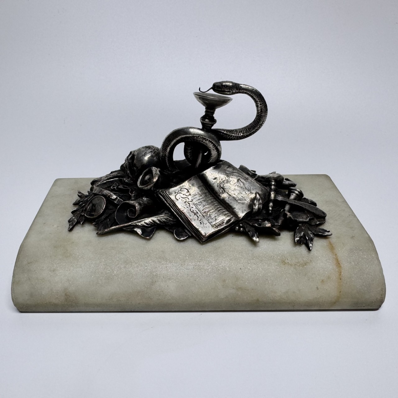 Пресс-папье «Медицина». Европа, конец XIX – начало ХХ вв. Металл, серебрение, мрамор.